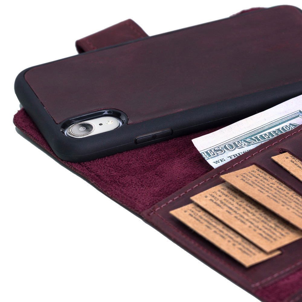 Apple iPhone XR Uyumlu Deri Cüzdanlı Kılıf Santa Kırmızı