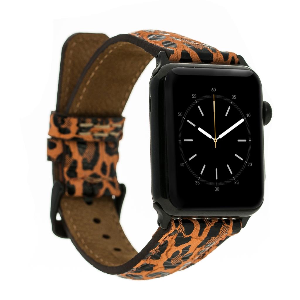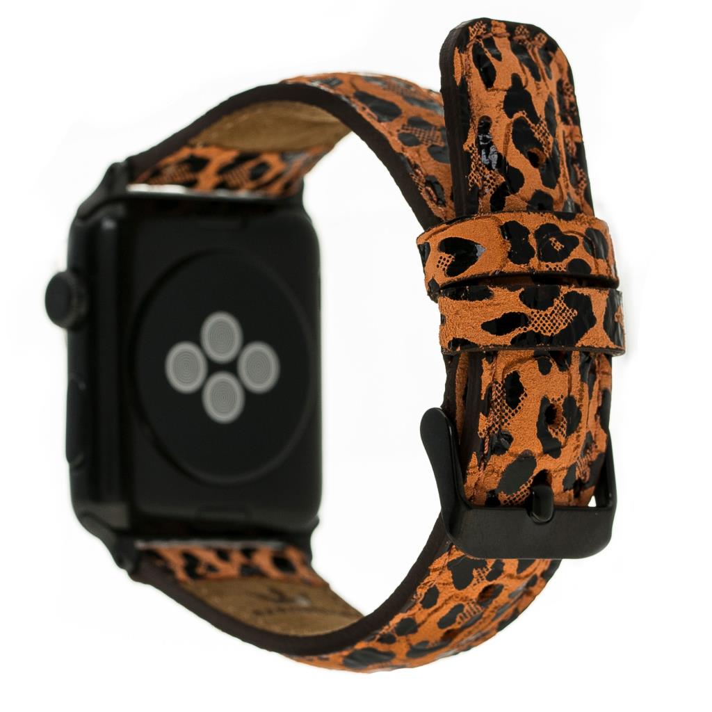 Apple Watch uyumlu, Hakiki Deri, El Yapımı Kordon, Leopar Baskılı