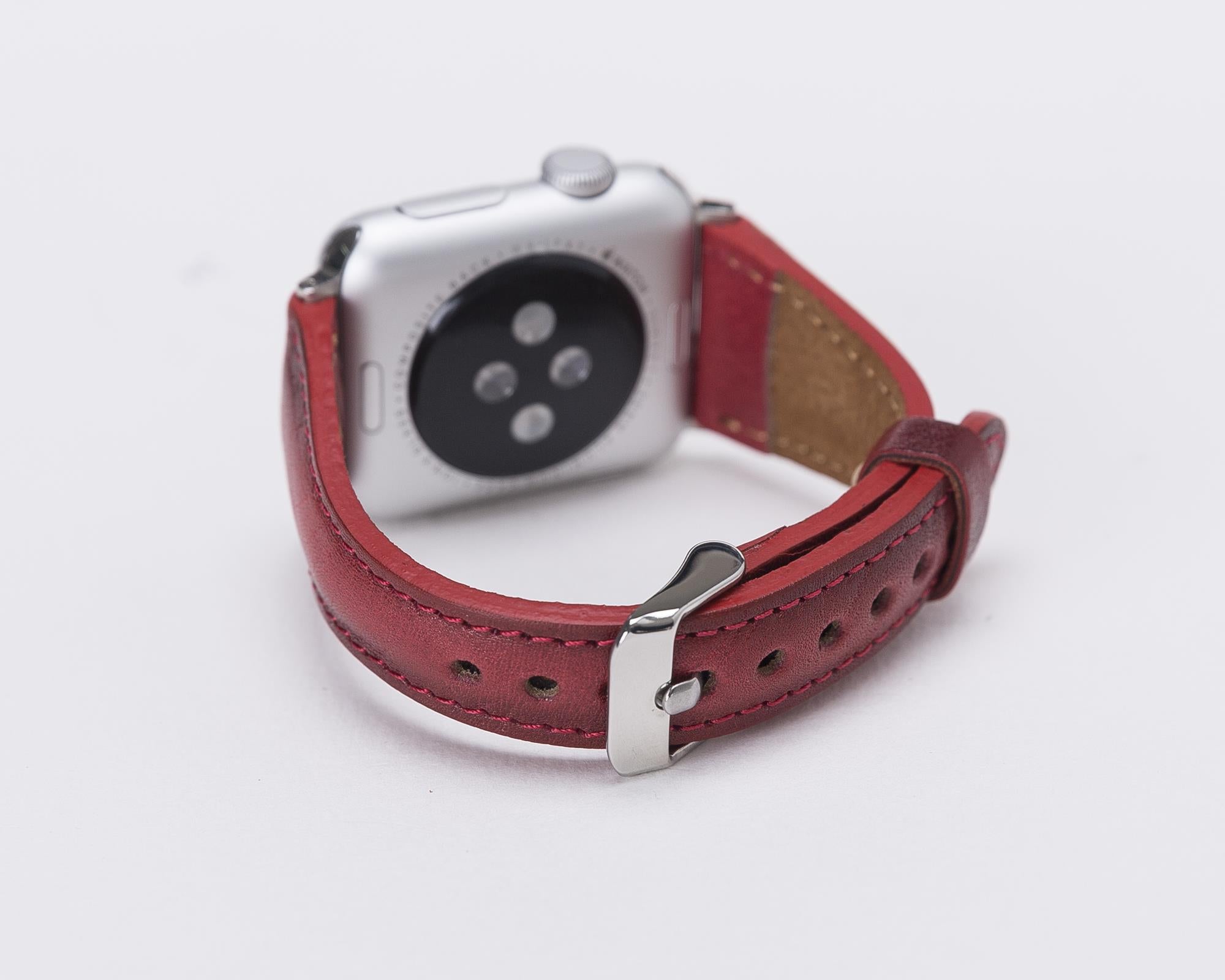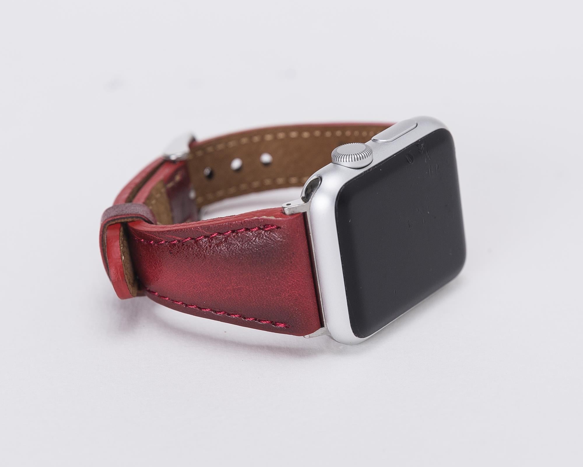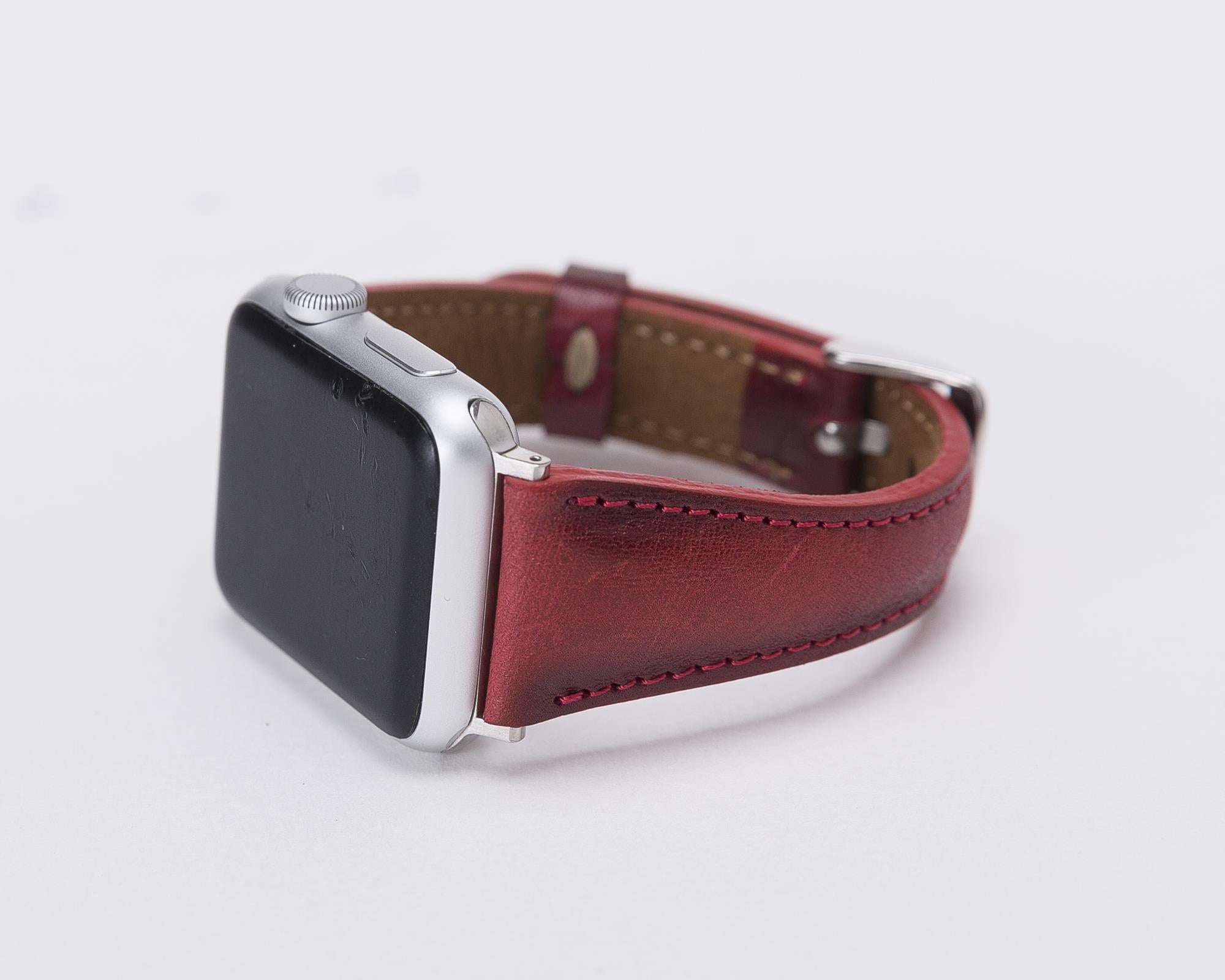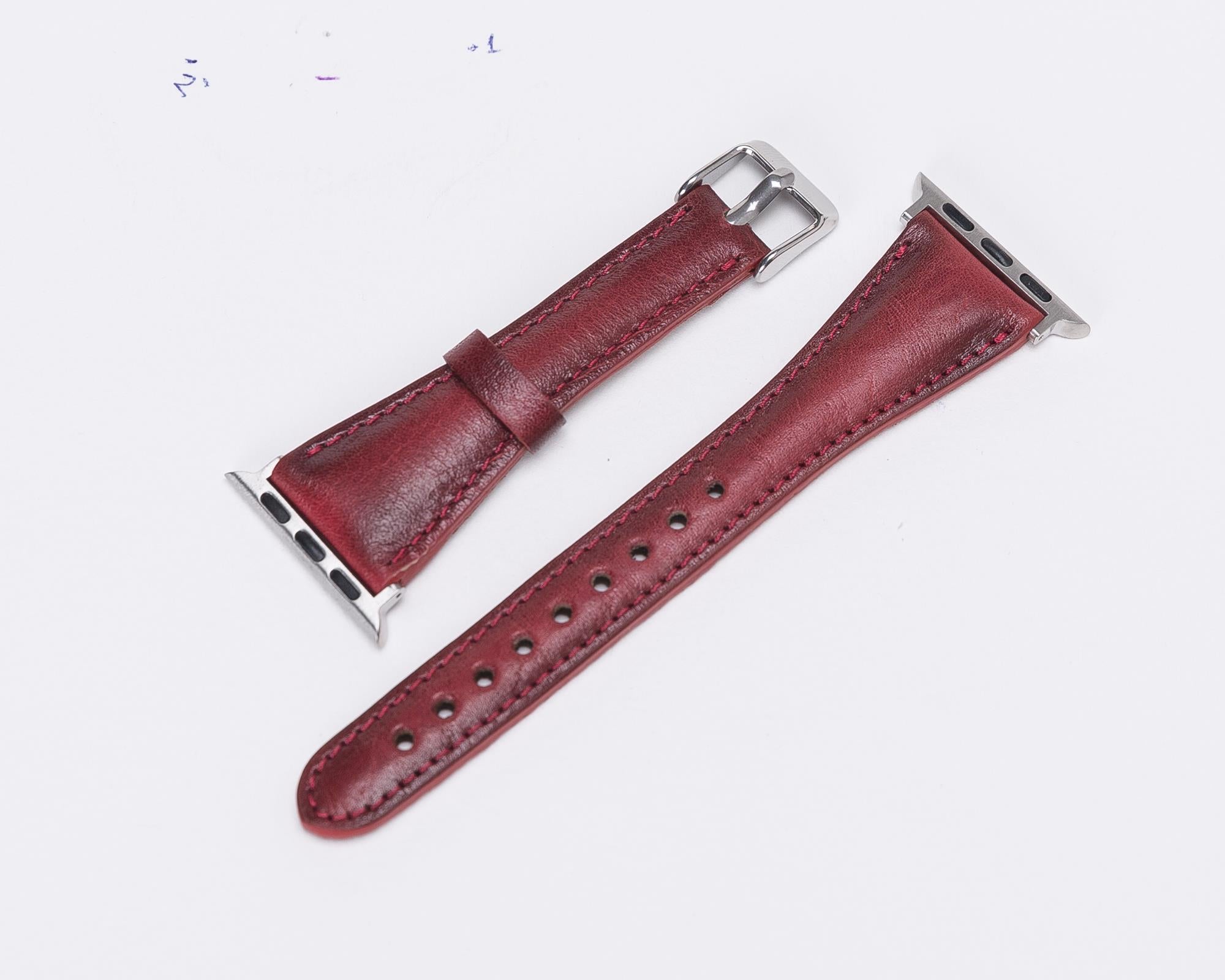 Apple Watch uyumlu, Hakiki Deri, El Yapımı Kordon, İnce, Bordo