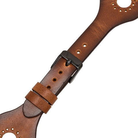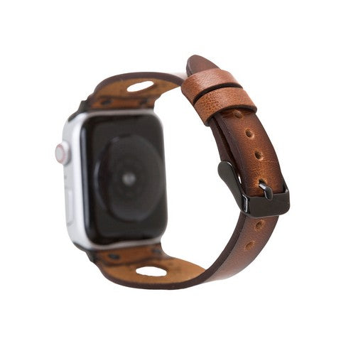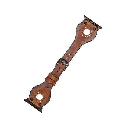 Apple Watch uyumlu, Hakiki Deri, El Yapımı Kordon, BT SM65 Gölgeli Taba