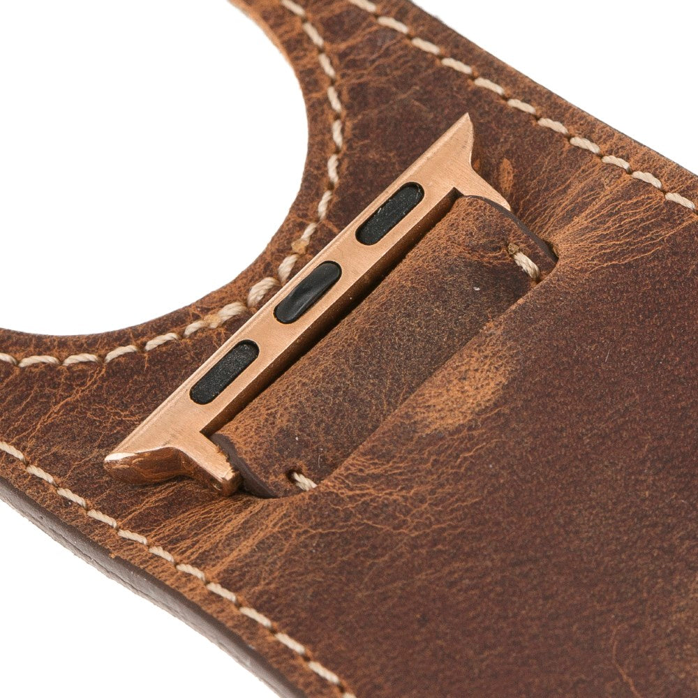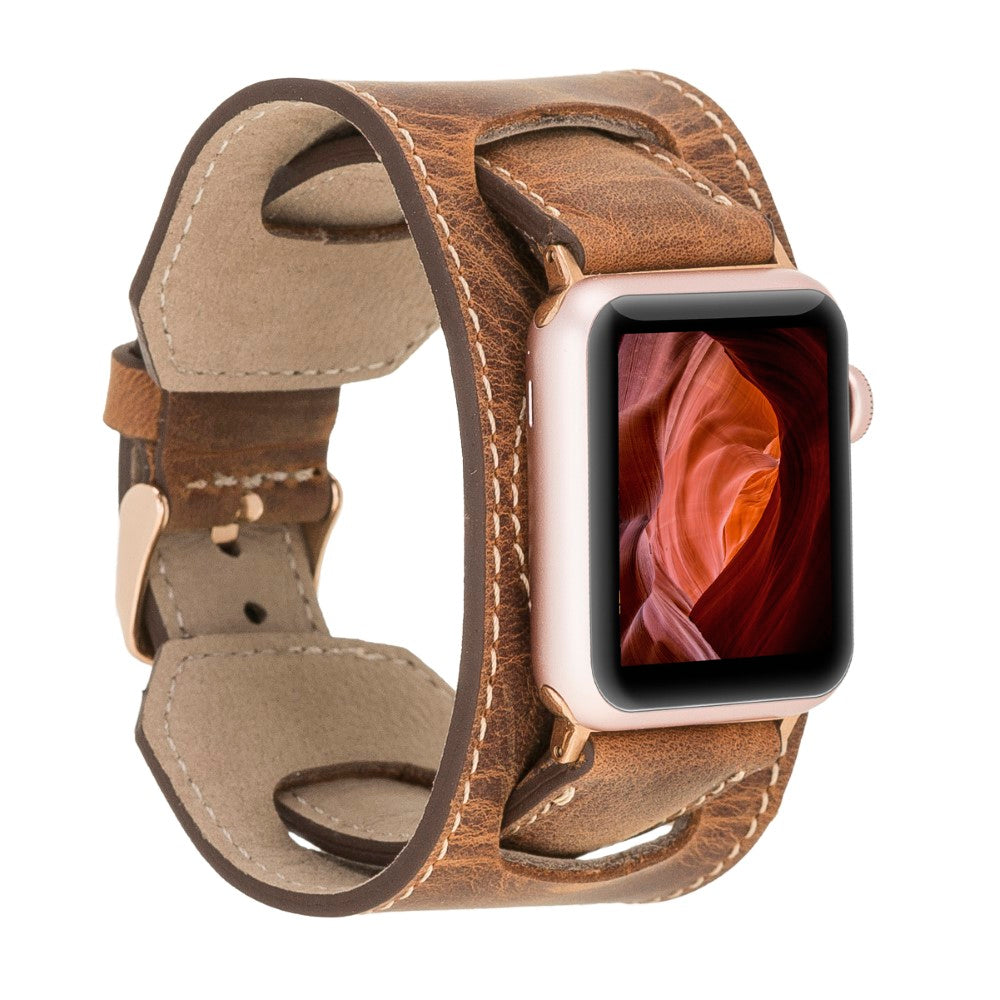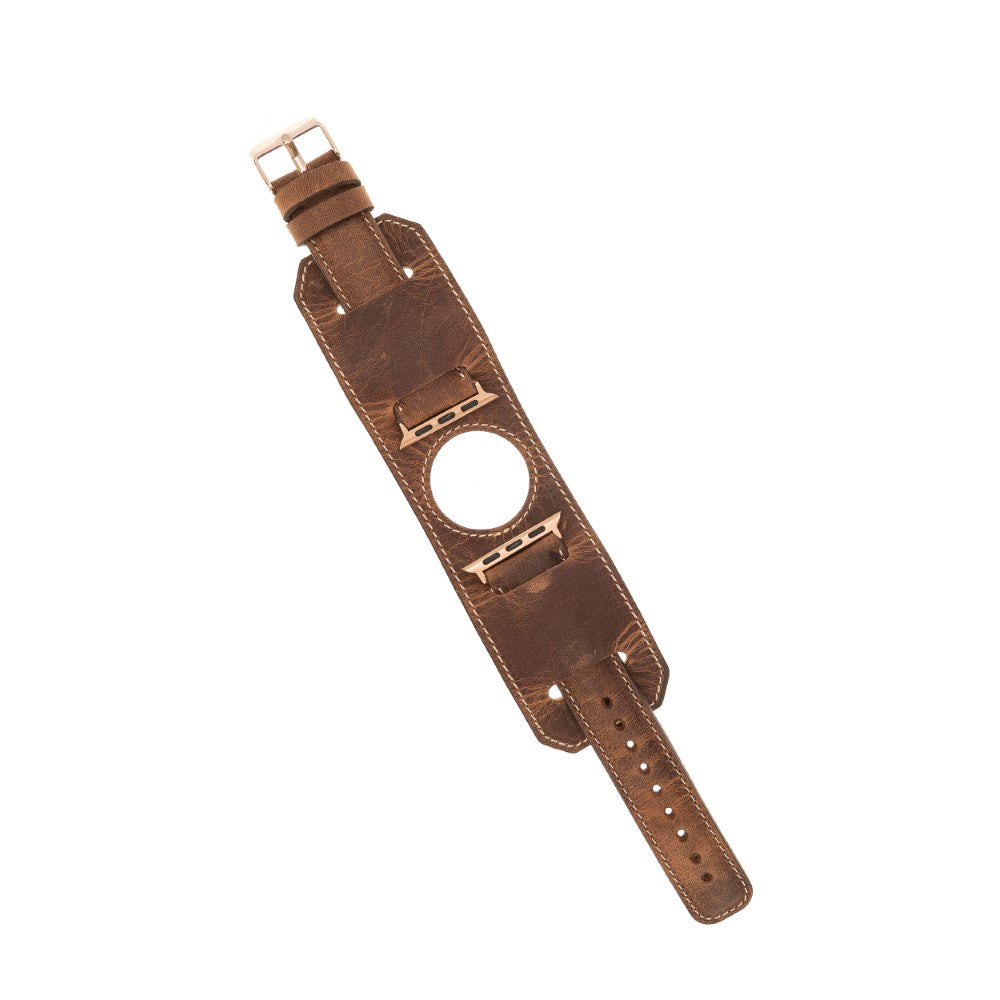 Apple Watch uyumlu, Hakiki Deri, El Yapımı Kordon, Cuff Antik Kahve