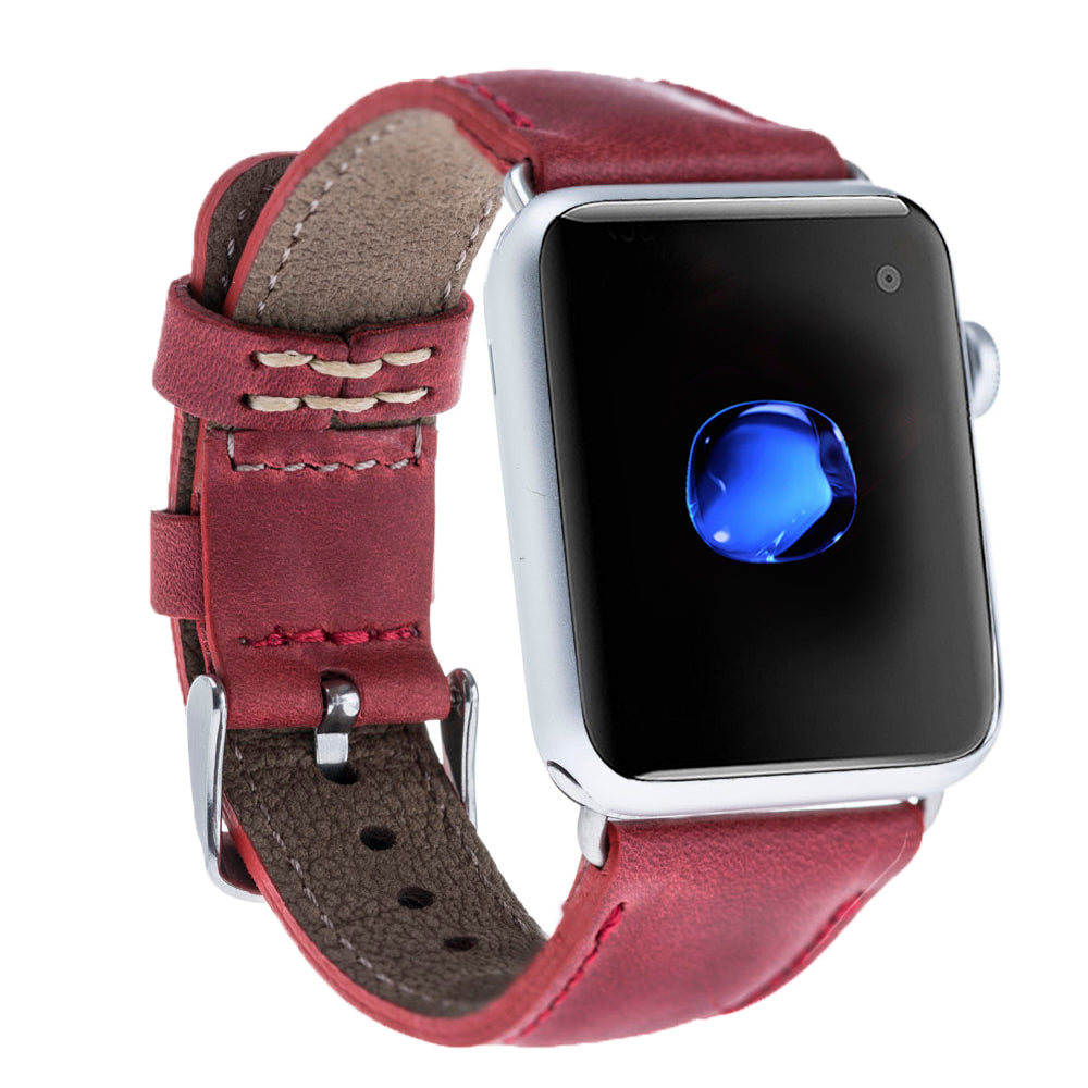Apple Watch uyumlu, Hakiki Deri, El Yapımı Kordon, CZ04 Kırmızı