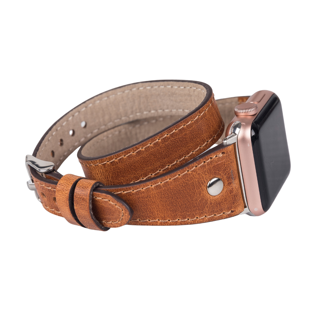 Apple Watch uyumlu, Hakiki Deri, El Yapımı Kordon, Çift Tur, Trok Detaylı, Antik Taba