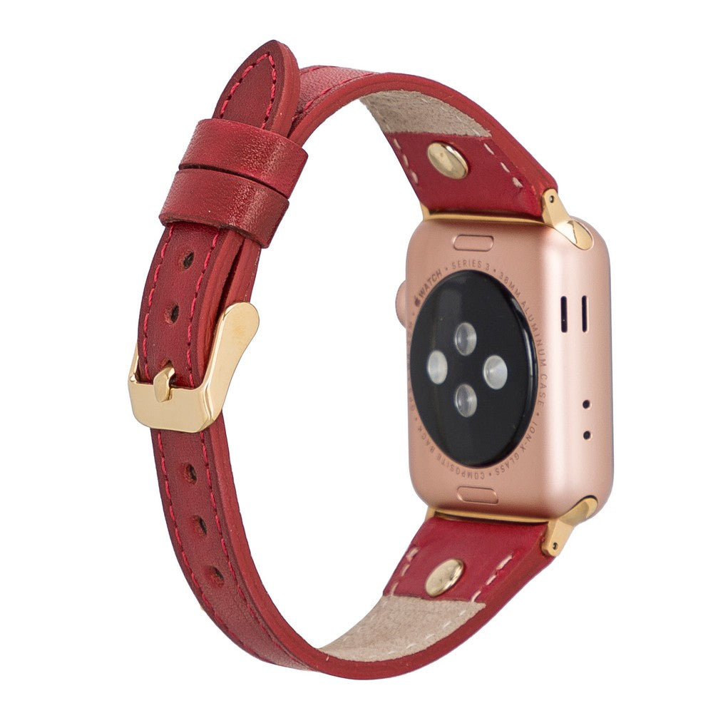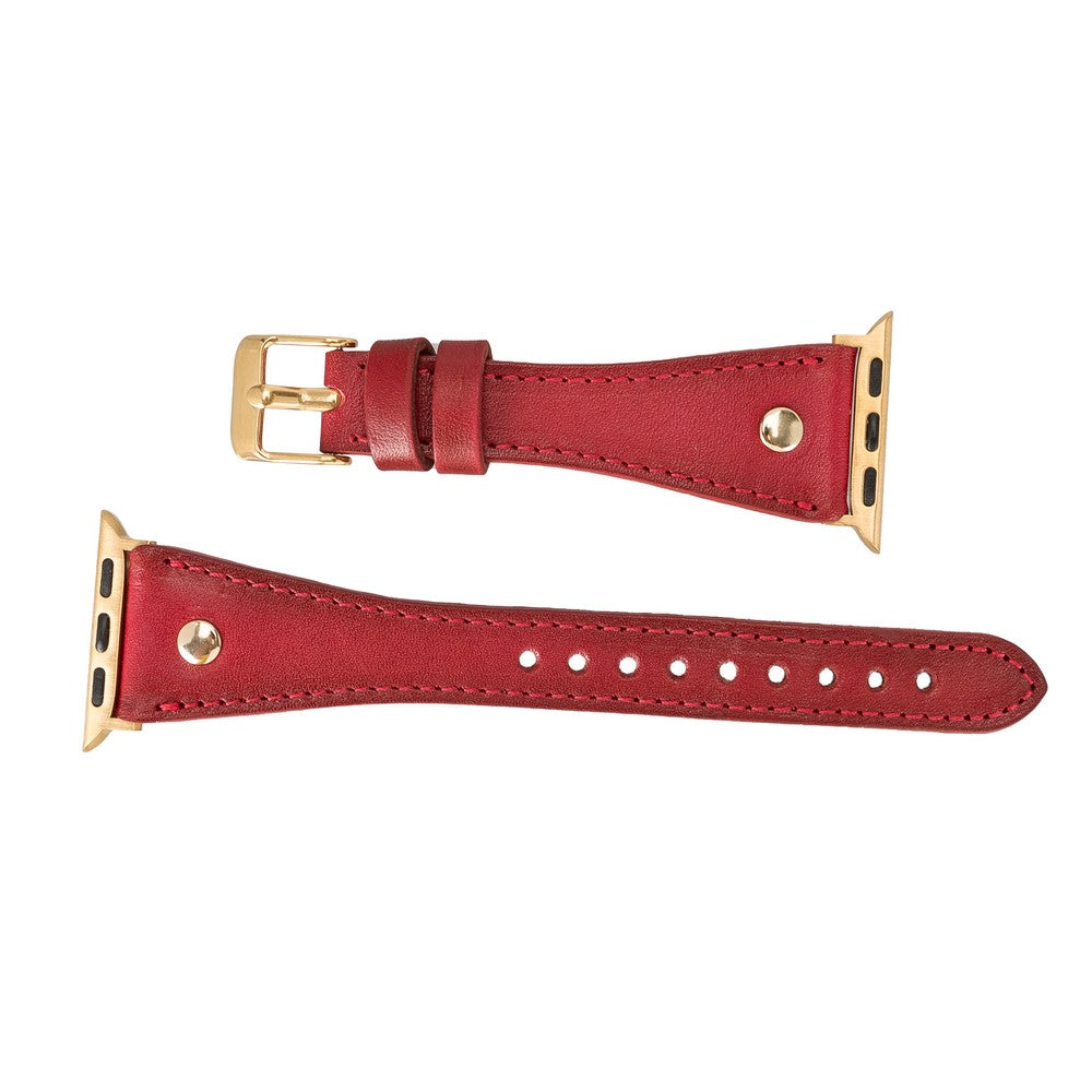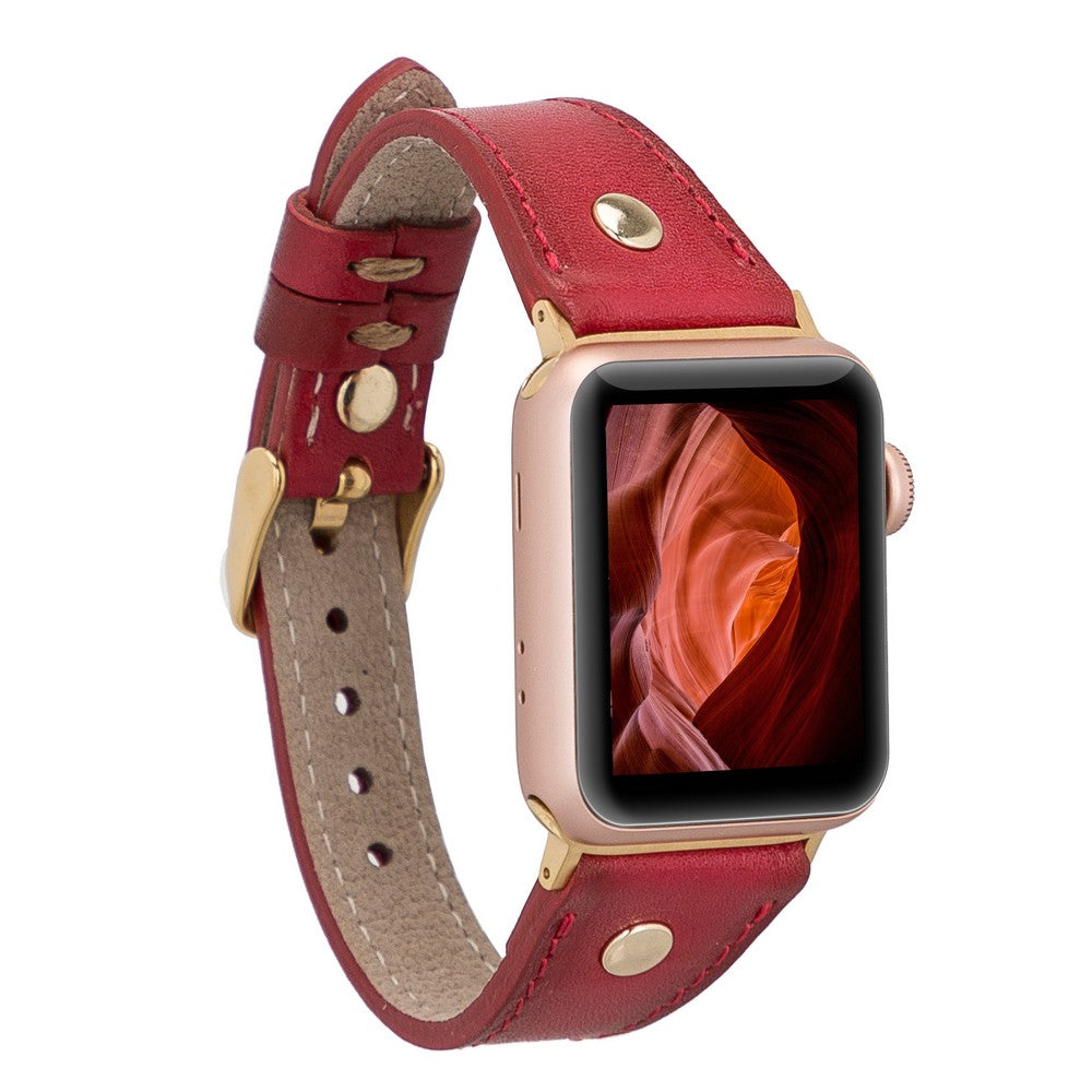 Apple Watch uyumlu, Hakiki Deri, El Yapımı Kordon, Slim GT Gölgeli Kırmızı