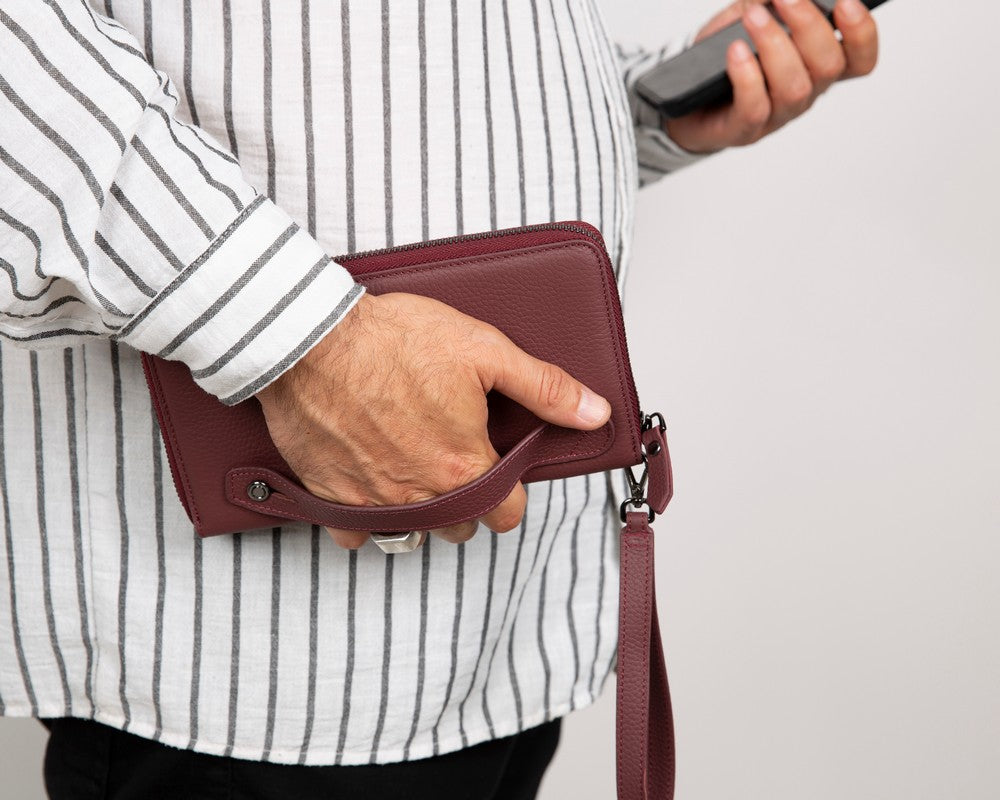 Aristo Hakiki Deri, El Yapımı, Telefon Bölmeli, Erkek El Çantası, Bordo