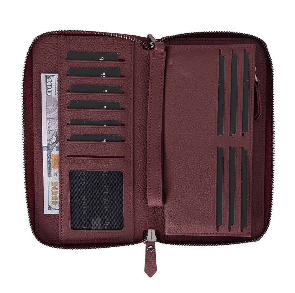 Bu deri cüzdan, telefonunuzu, kartlarınızı, nakit paranızı ve bozuk paralarınızı taşımak için şık ve hepsi bir arada bir çözümdür. Mıknatıslı telefon bölmesi, 12 kart yuvası ve çoklu bölmeleri sayesinde hem pratiklik hem de koruma sunar. Bilek askısı ve elcik tasarımıyla günlük kullanım ya da seyahatler için uygundur.