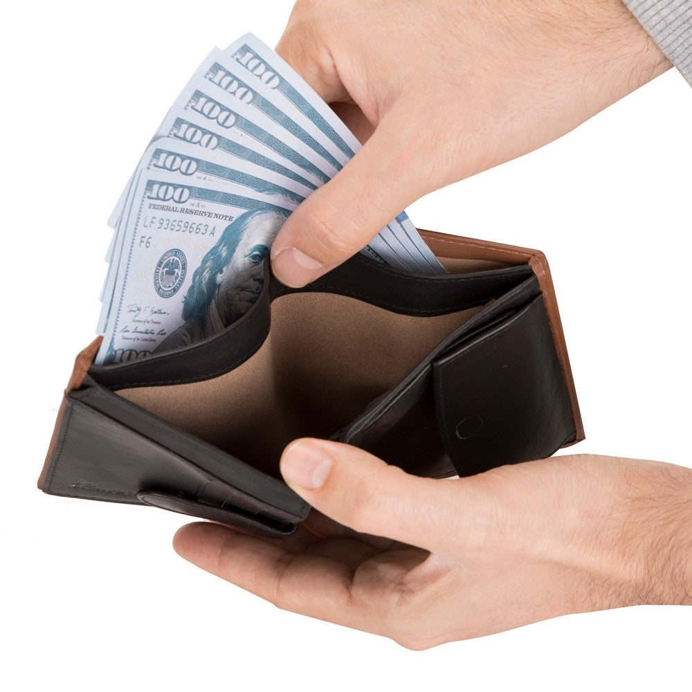 Ana kağıt para bölmesi ,kredi kartları veya kartvizitler için de kullanılabilecek bölümlere sahiptir.