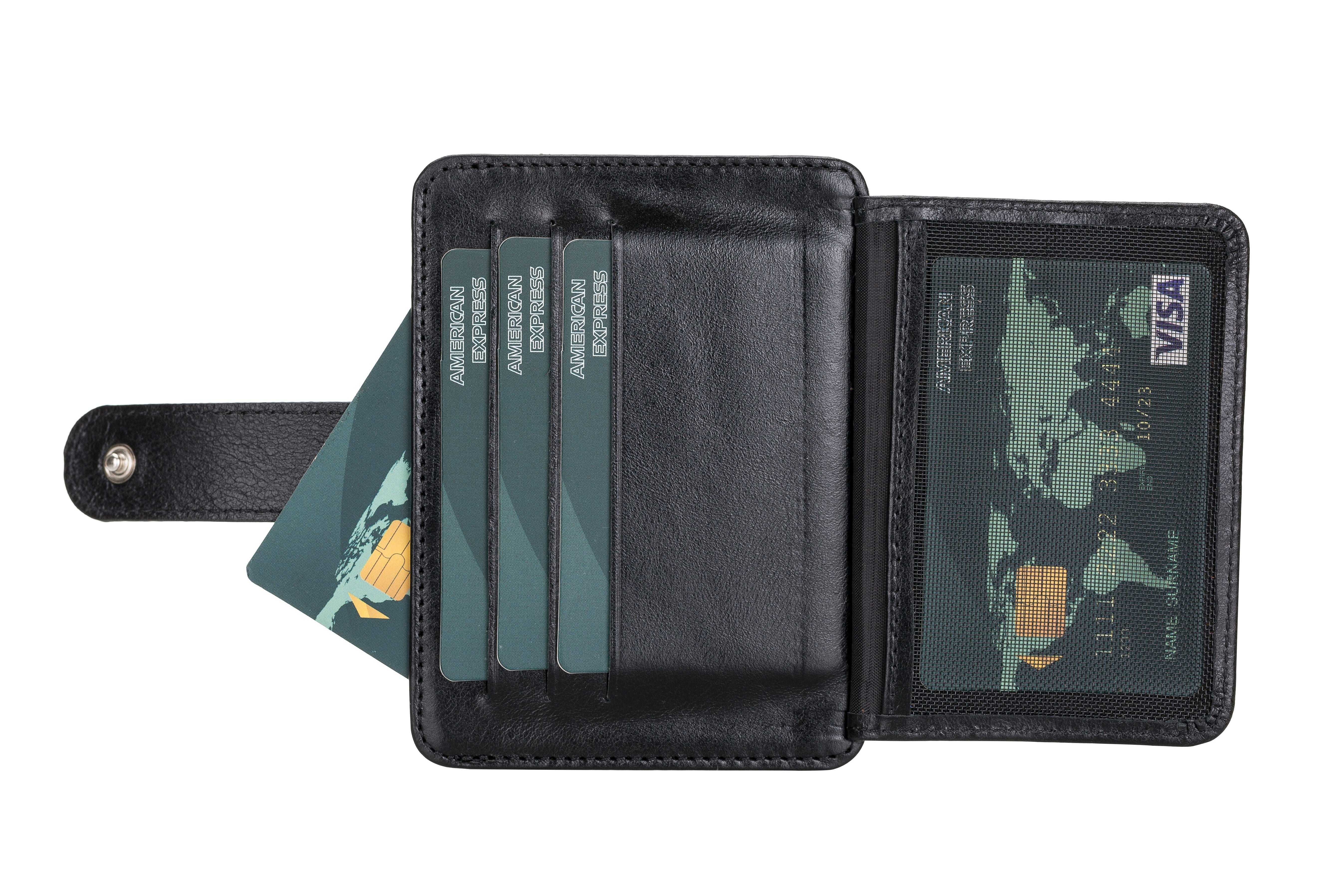 Hakiki Deri, El Yapımı Kartlık, 6 Adet Kart Bölmesi, 2 Adet Pencereli, Siyah