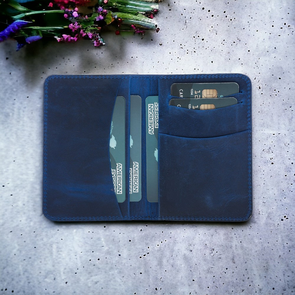 Dalfsen Hakiki Deri, El Yapımı Kartlık, 6 Kart Kapasiteli, Mavi