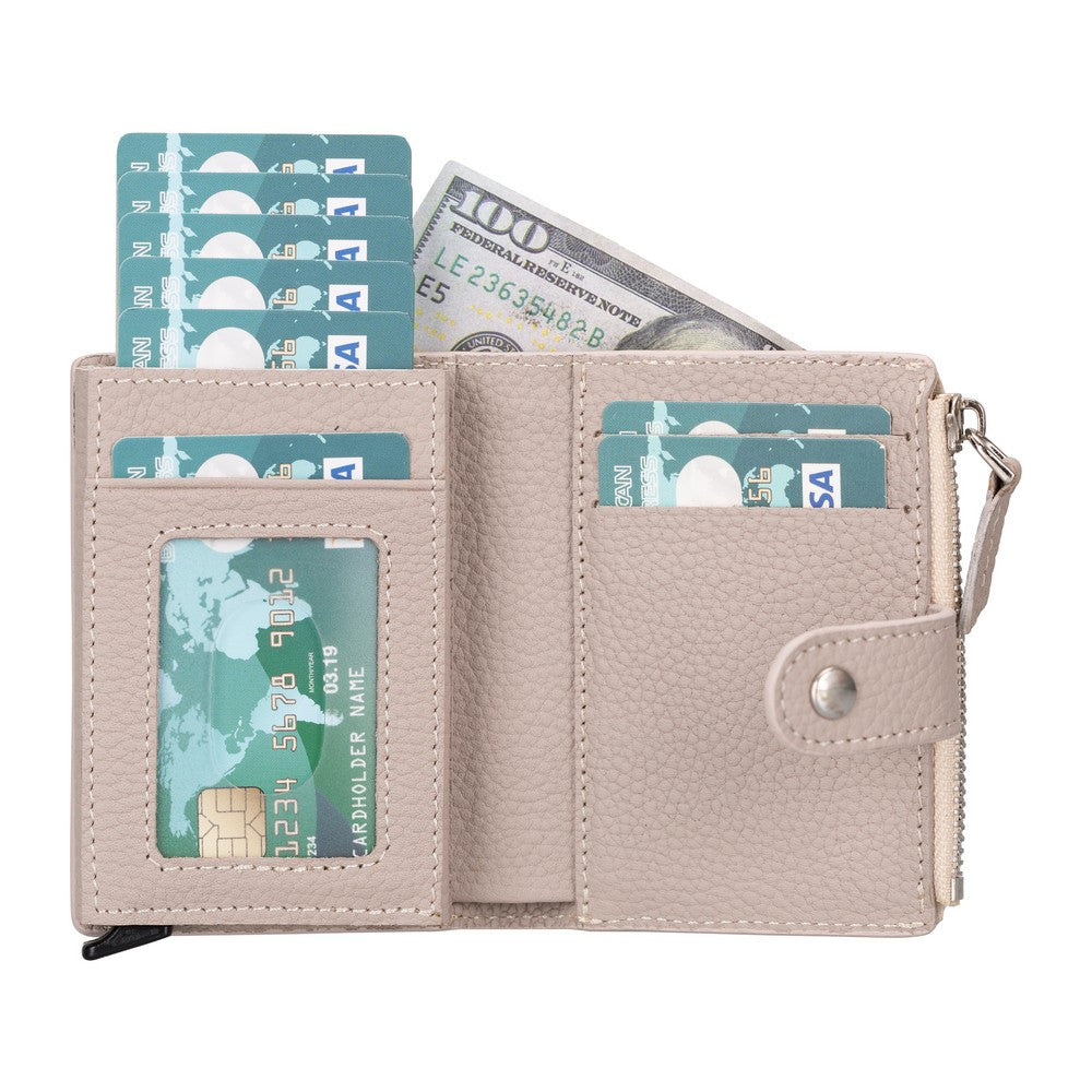 Hakiki Deri, El Yapımı, Pop-Up Cüzdan, 10 Adet Kart Bölmesi, Bej