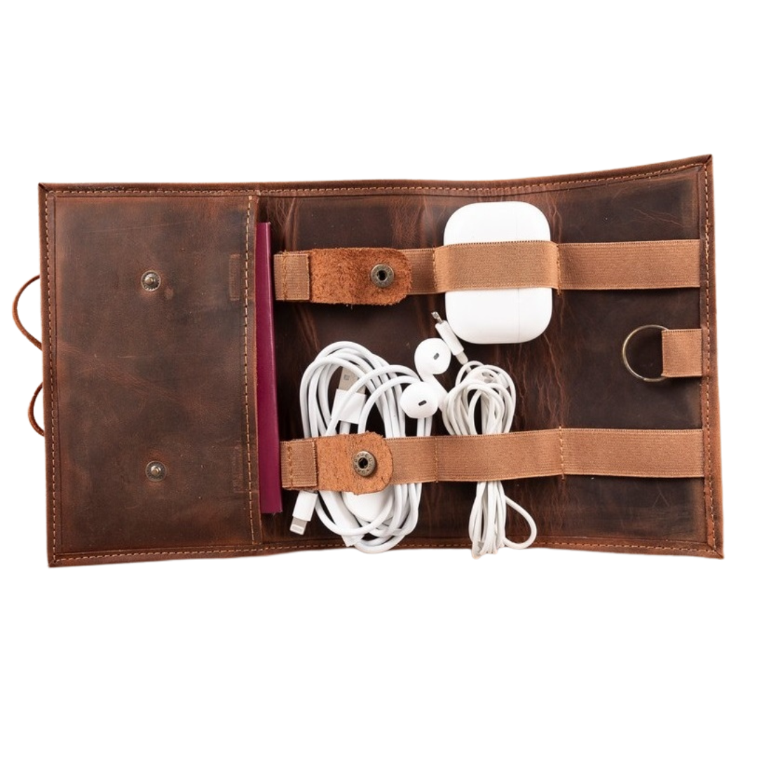 Hakiki Deri, El Yapımı, Kablo ve Aksesuar Taşıma Çantası, G2 Antik Kahve