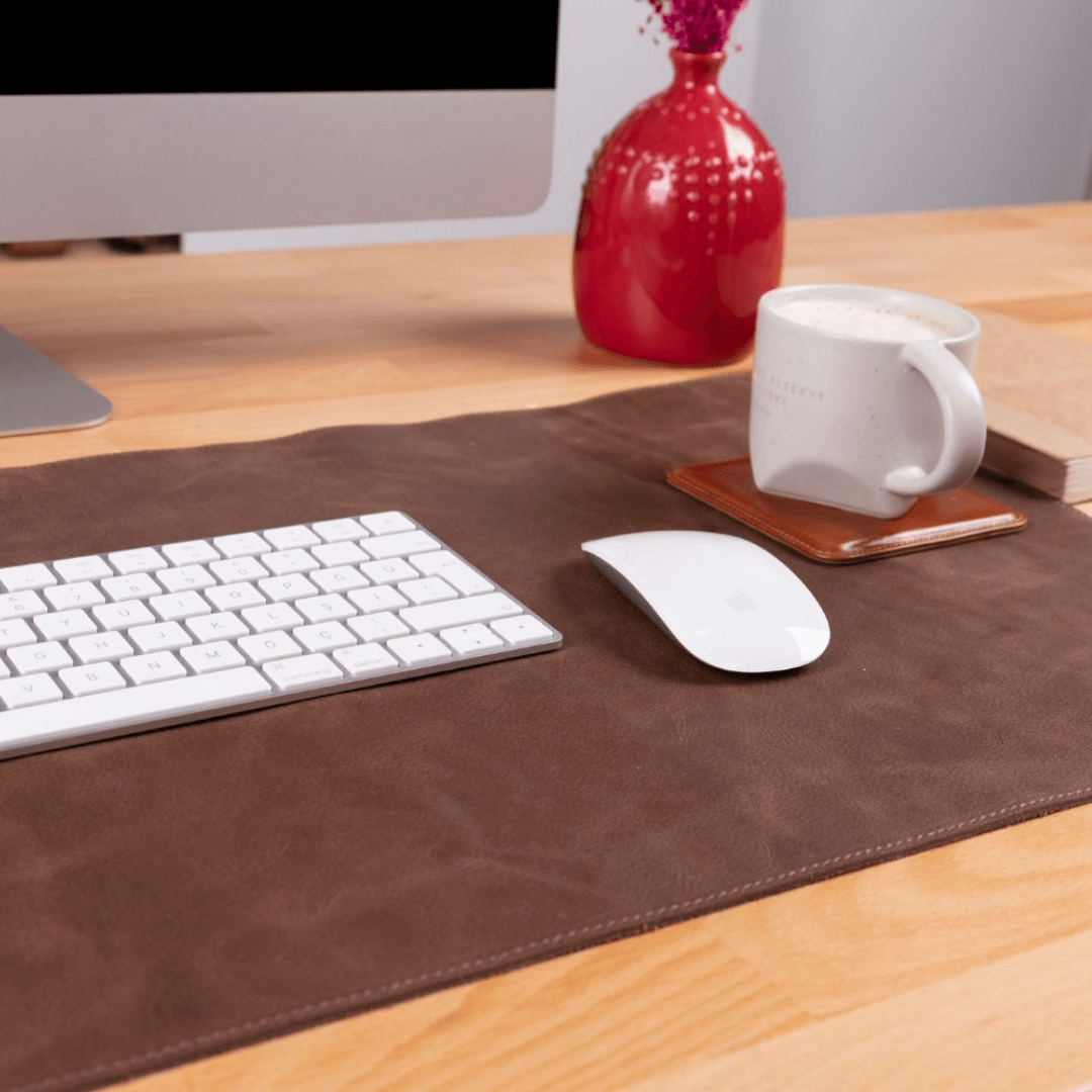 Hakiki Deri, El Yapımı Masa Matı, 80*37cm Antik Kahverengi
