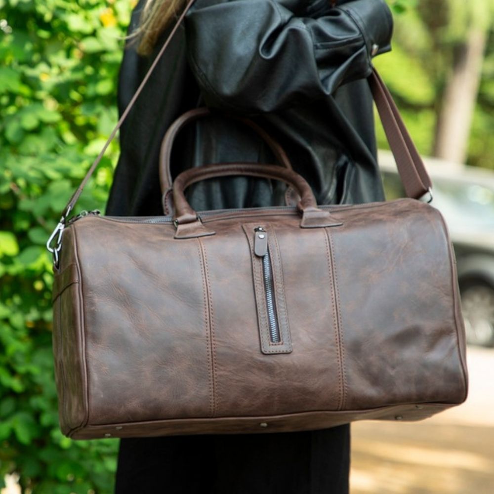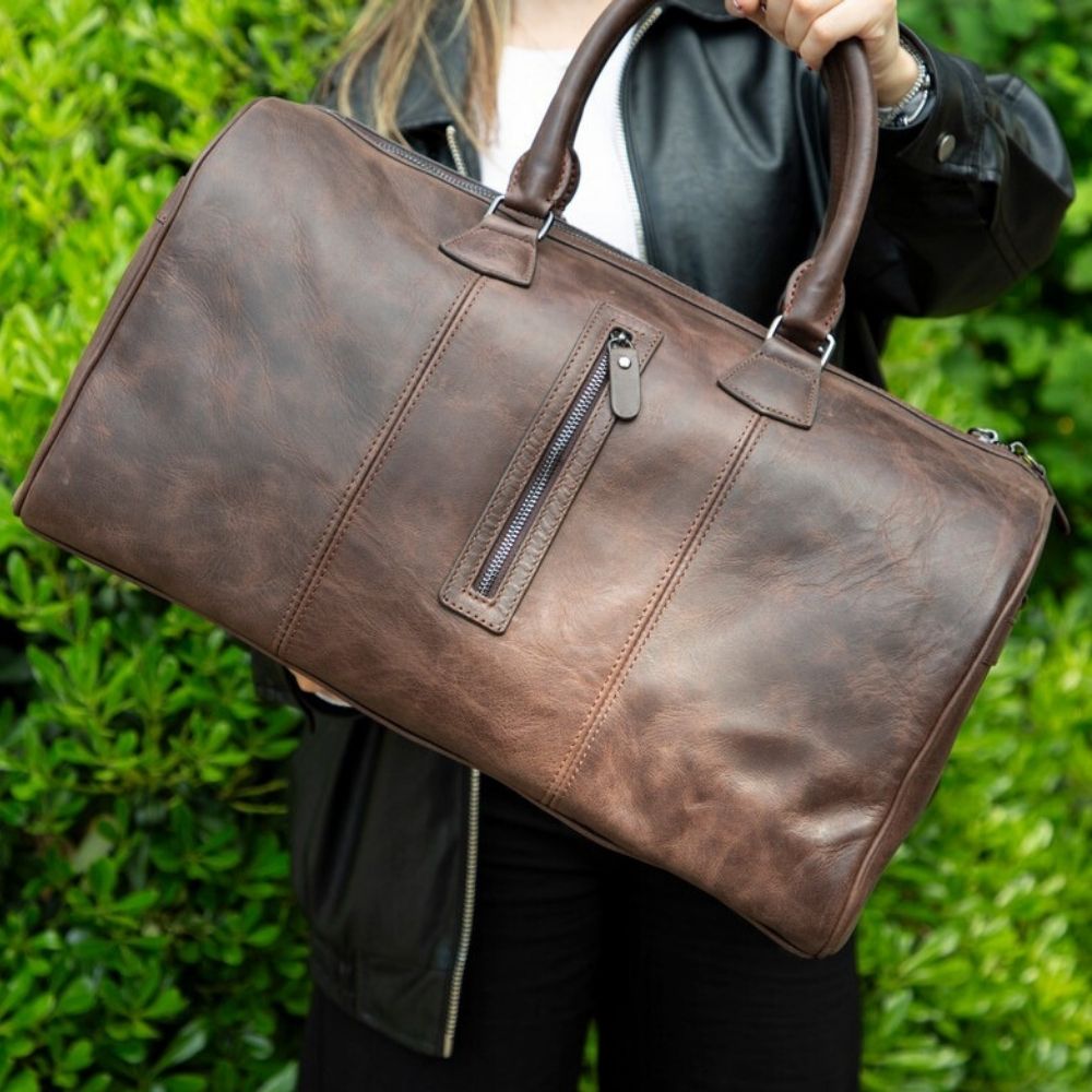 Dolly Hakiki Deri, El Yapımı, Seyahat Çantası, Antik Koyu Kahve
