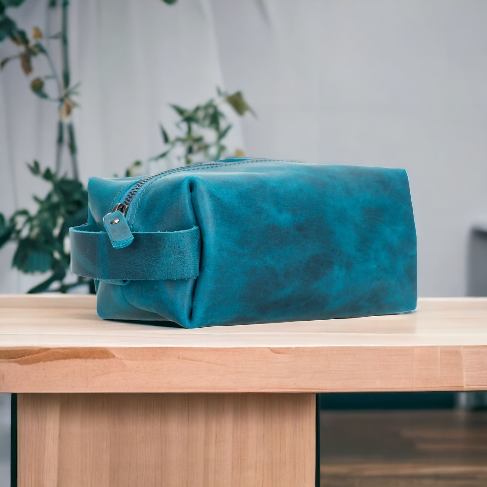 Eve Dopp Kit, Hakiki Deri, El Yapımı, Kişisel Bakım Çantası, M Ölçü, AA32 Mavi