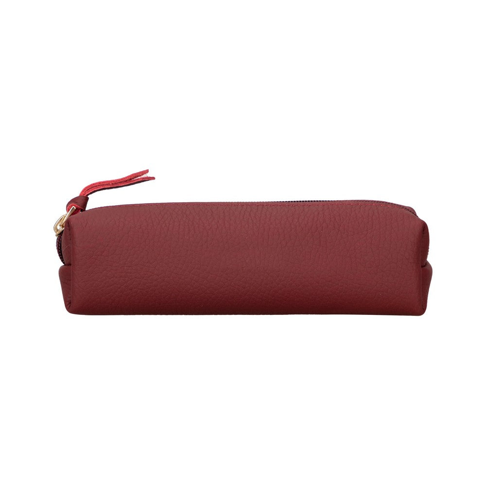 Hakiki Deri, El Yapımı, Fermuarlı Kalem ve Aksesuar Çantası, Bordo