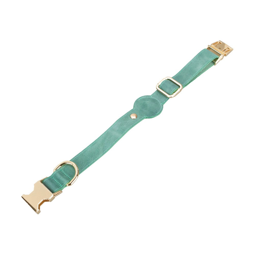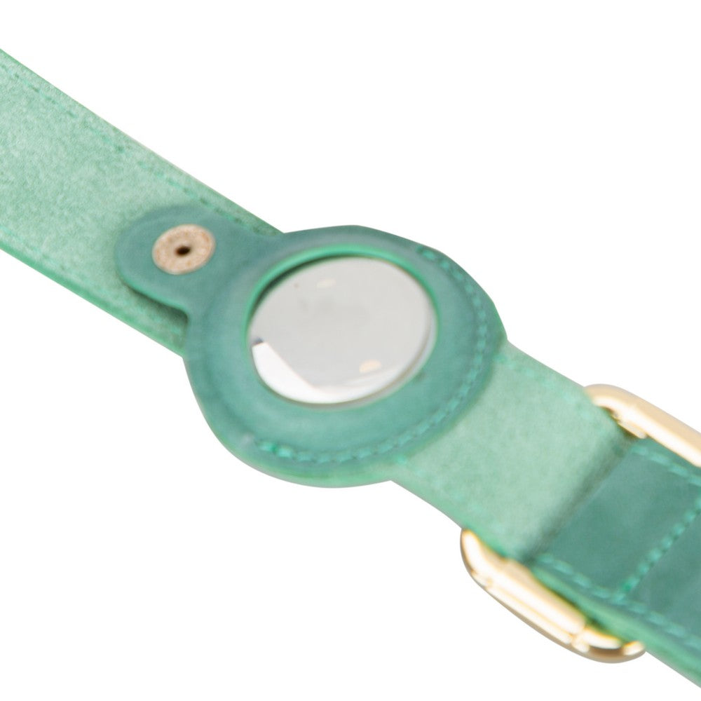 Hakiki Deri, El Yapımı, Apple Airtag Yuvalı Köpek Tasması, 34-50cm Ayarlanabilir Ölçü, Antik Yeşil