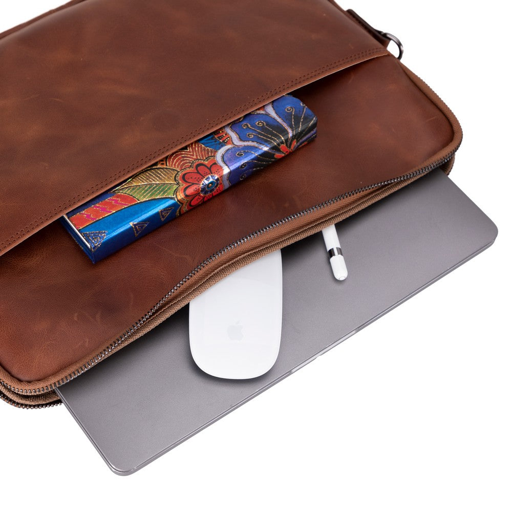 Leeds 14 inç MacBook Ve Pc Uyumlu, Hakiki Deri, El Yapımı Kılıf, Karamel