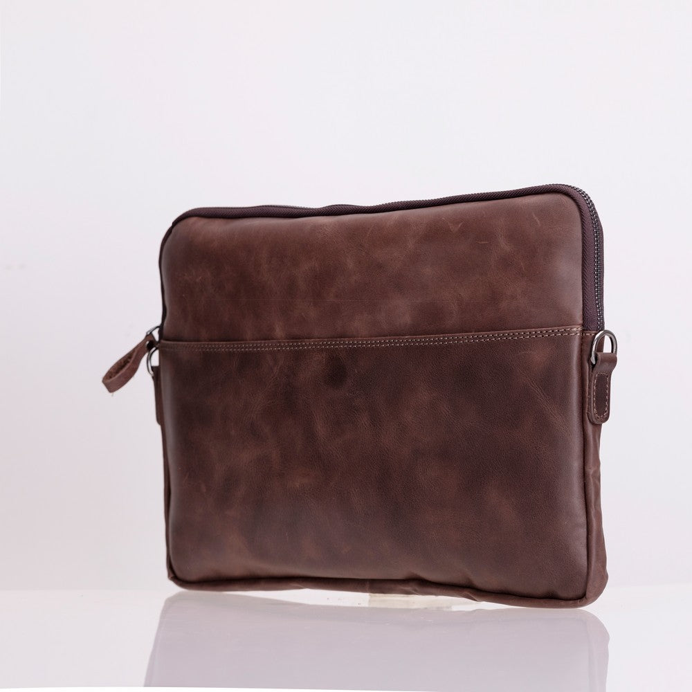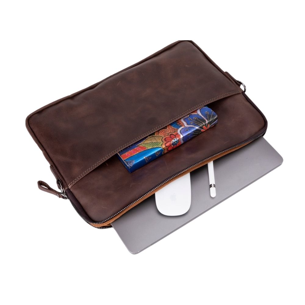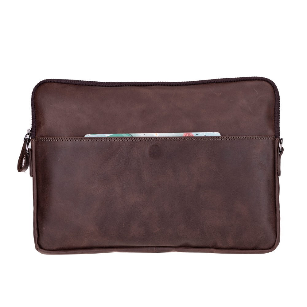 Leeds 16 inç MacBook Ve Pc Uyumlu, Hakiki Deri, El Yapımı Kılıf, Antik Kahve