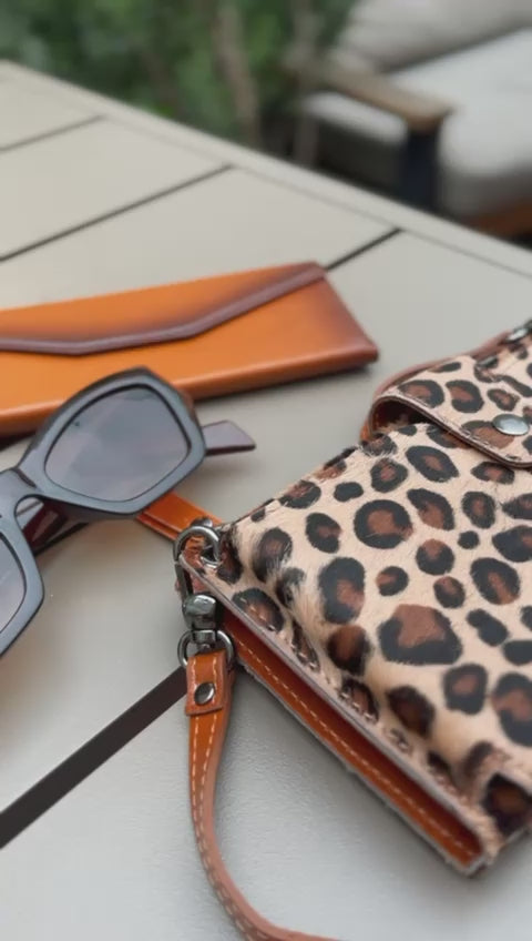Leopar Baskılı Cüzdan Kılıf, + Hakiki Deri, El Yapımı Gözlük Kılıfı, Paket
