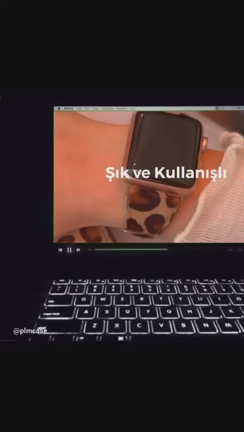 Leopar Baskılıli Deriden Cüzdan Kılıf, + Saat Kordonu + Anahtarlık