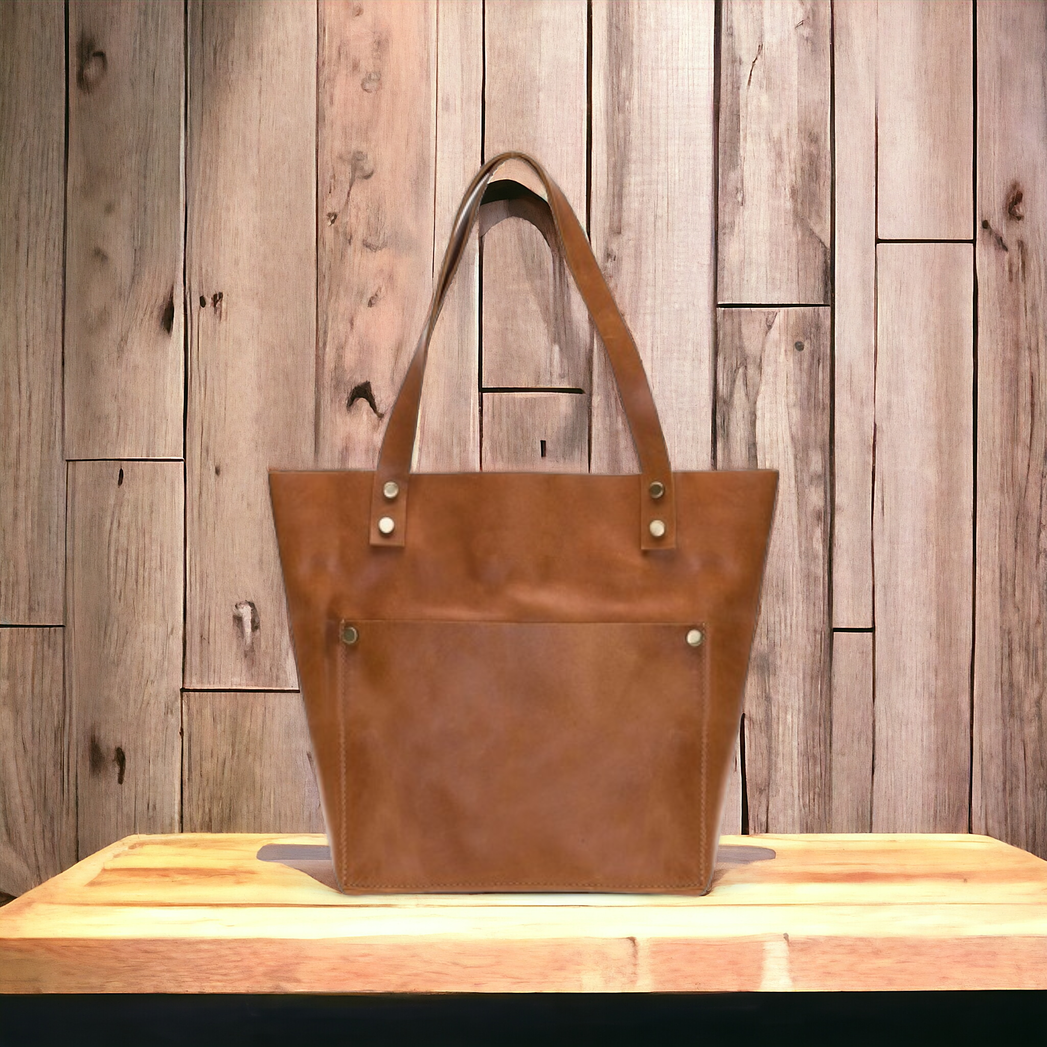 Moon Hakiki Deri, El Yapımı Kadın Çantası, Büyük Boy, Antik Taba