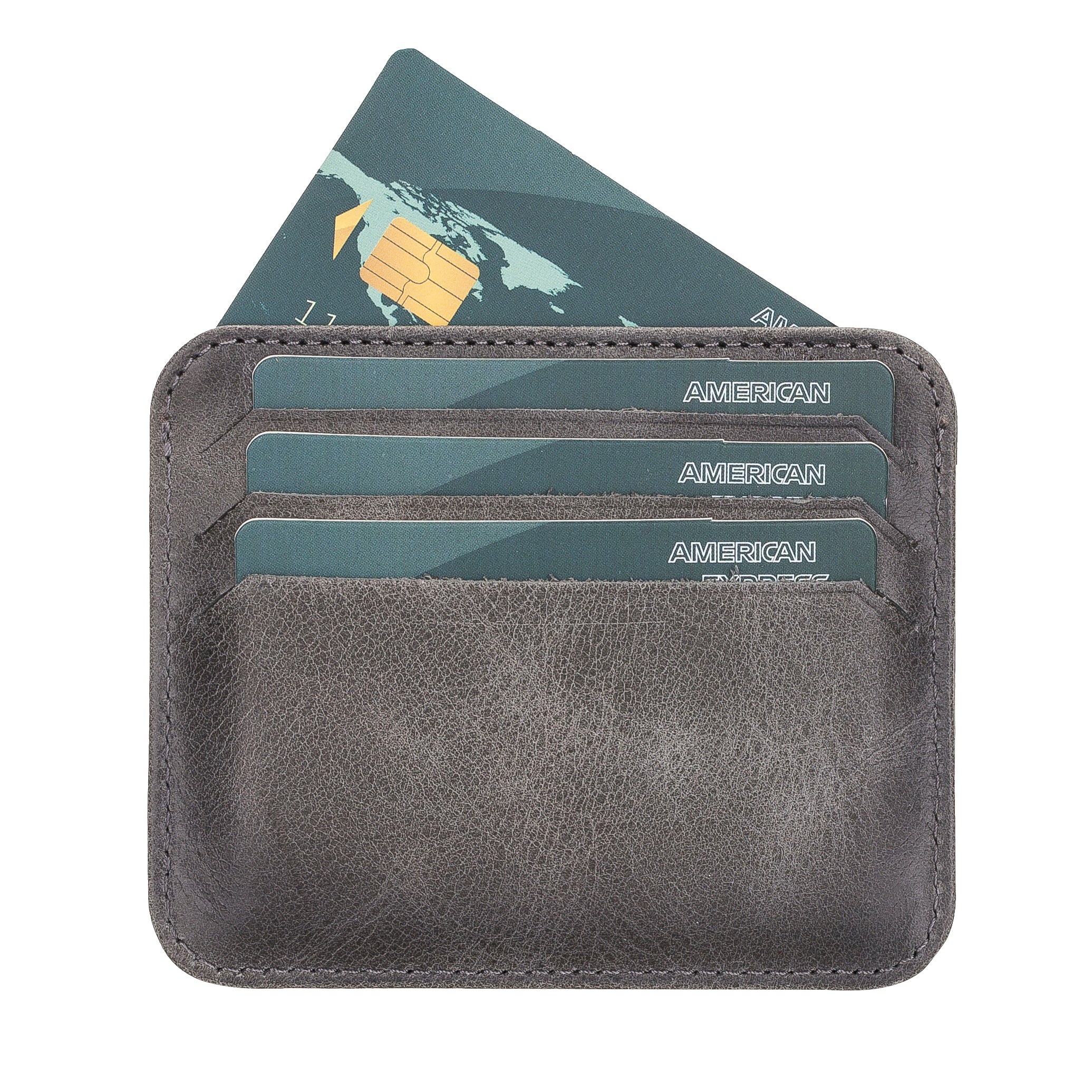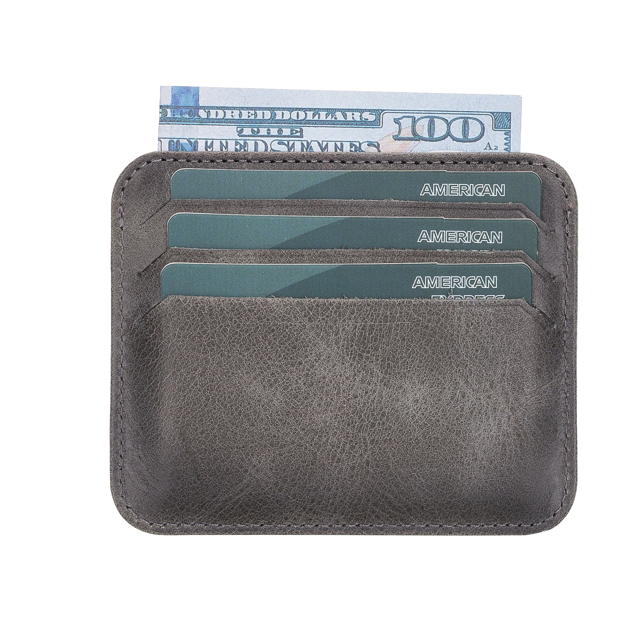 Hakiki Deri, El Yapımı Kartlık, Kağıt Para Bölümü, 6 Adet Kart Bölmesi, Gölgeli Gri