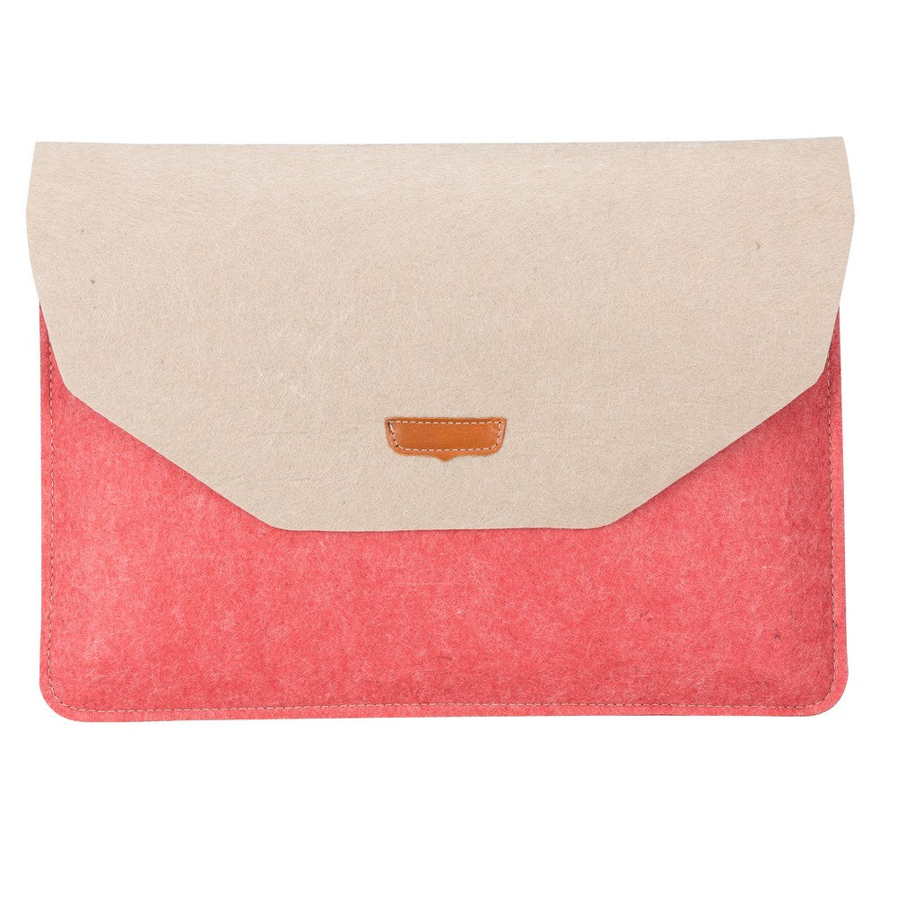 Dolly Keçe Kumaş 13-14 inç Tablet Pc Çantası Bej-Kırmızı