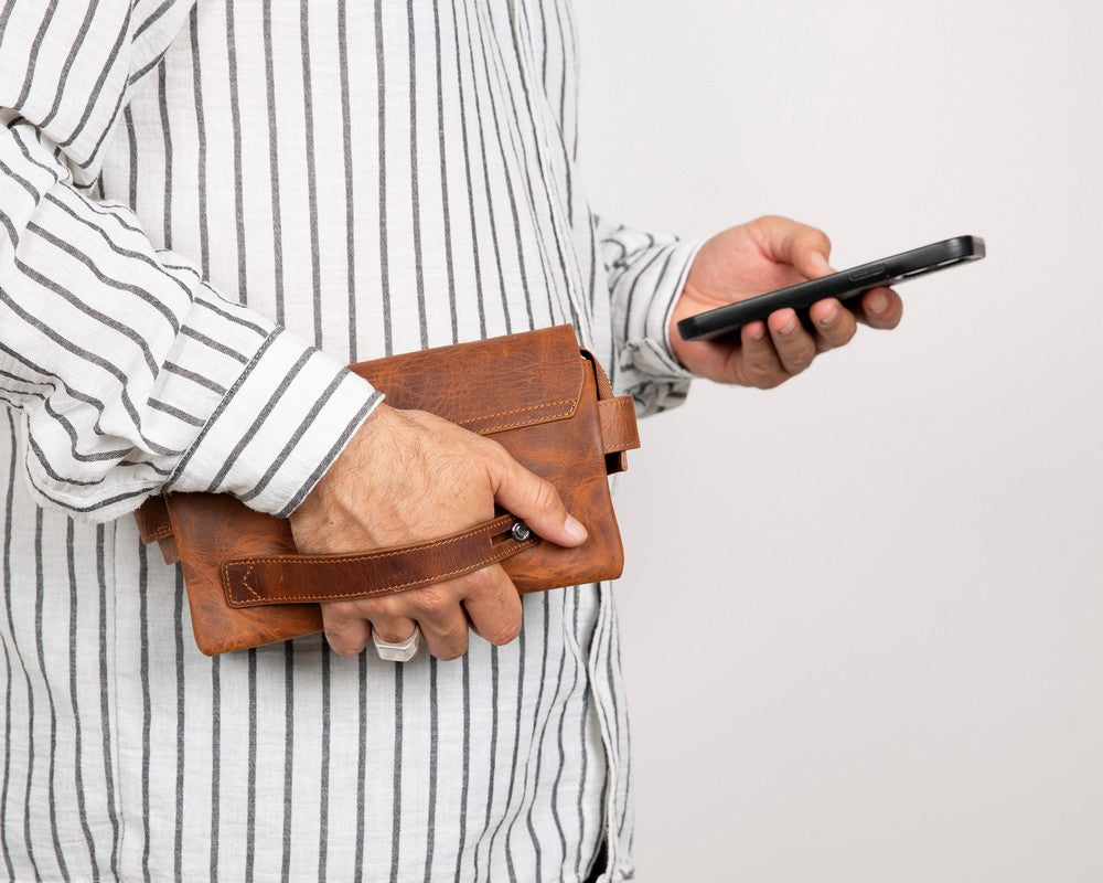 Prestige Hakiki Deri, El Yapımı, Telefon Bölmeli, Erkek El Çantası, Antik Kahve