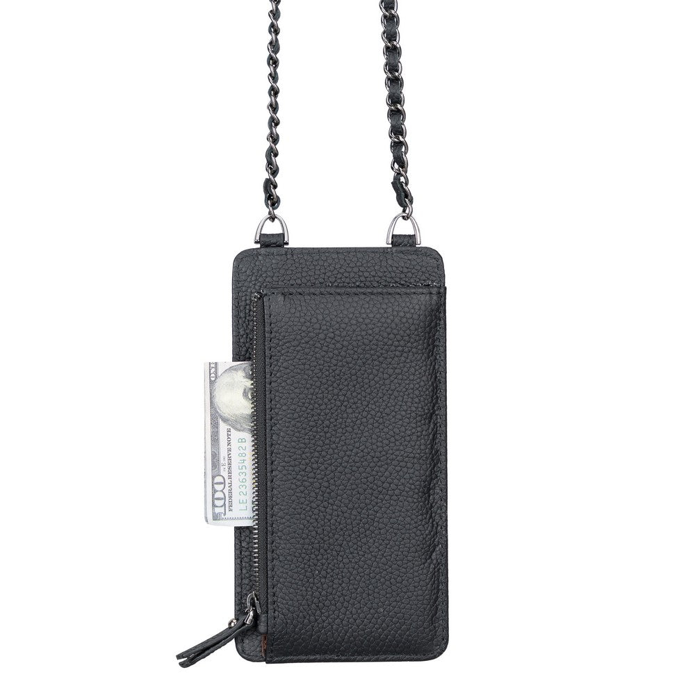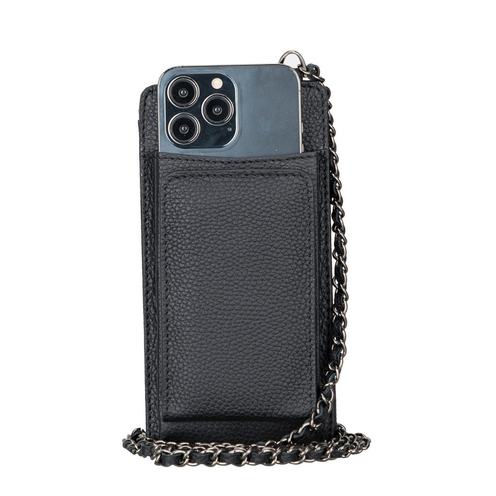 2 in 1, Zincir Askılı Deri Cüzdan-Kartlık ve Telefon Kılıfı