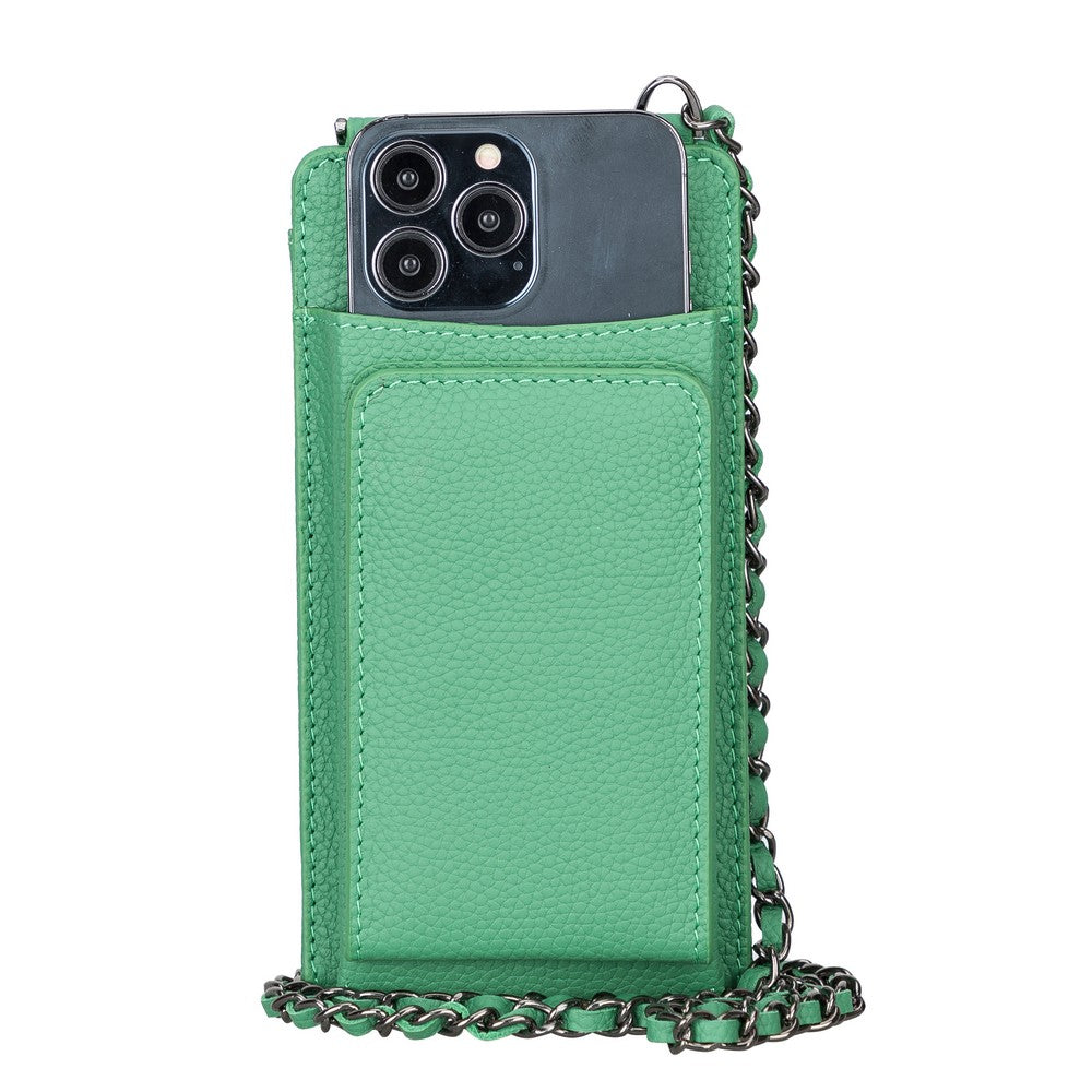 Reina 6.9 inch uyumlu, Hakiki Deri, El Yapımı, Askılı Cüzdan, ERC4 Yeşil