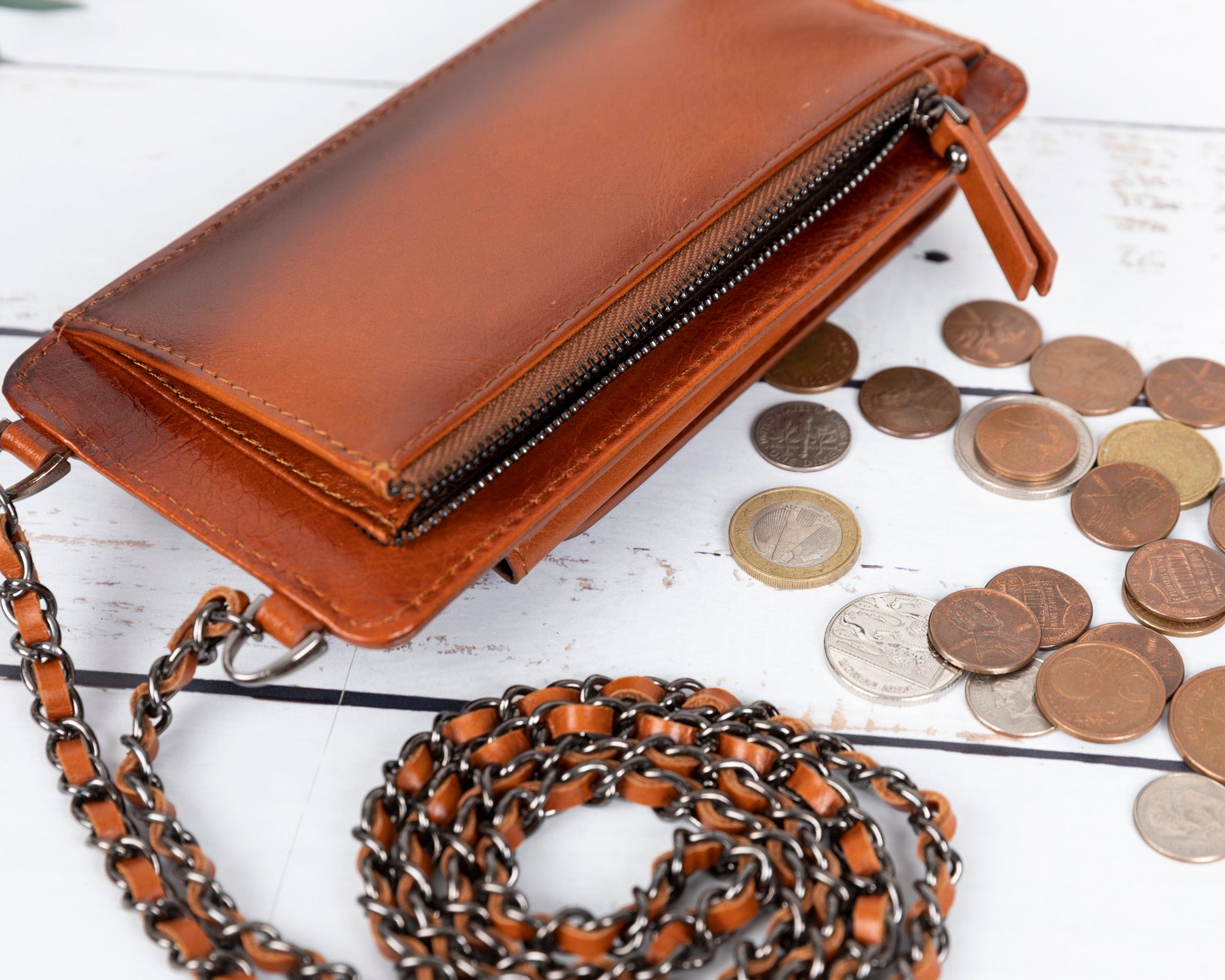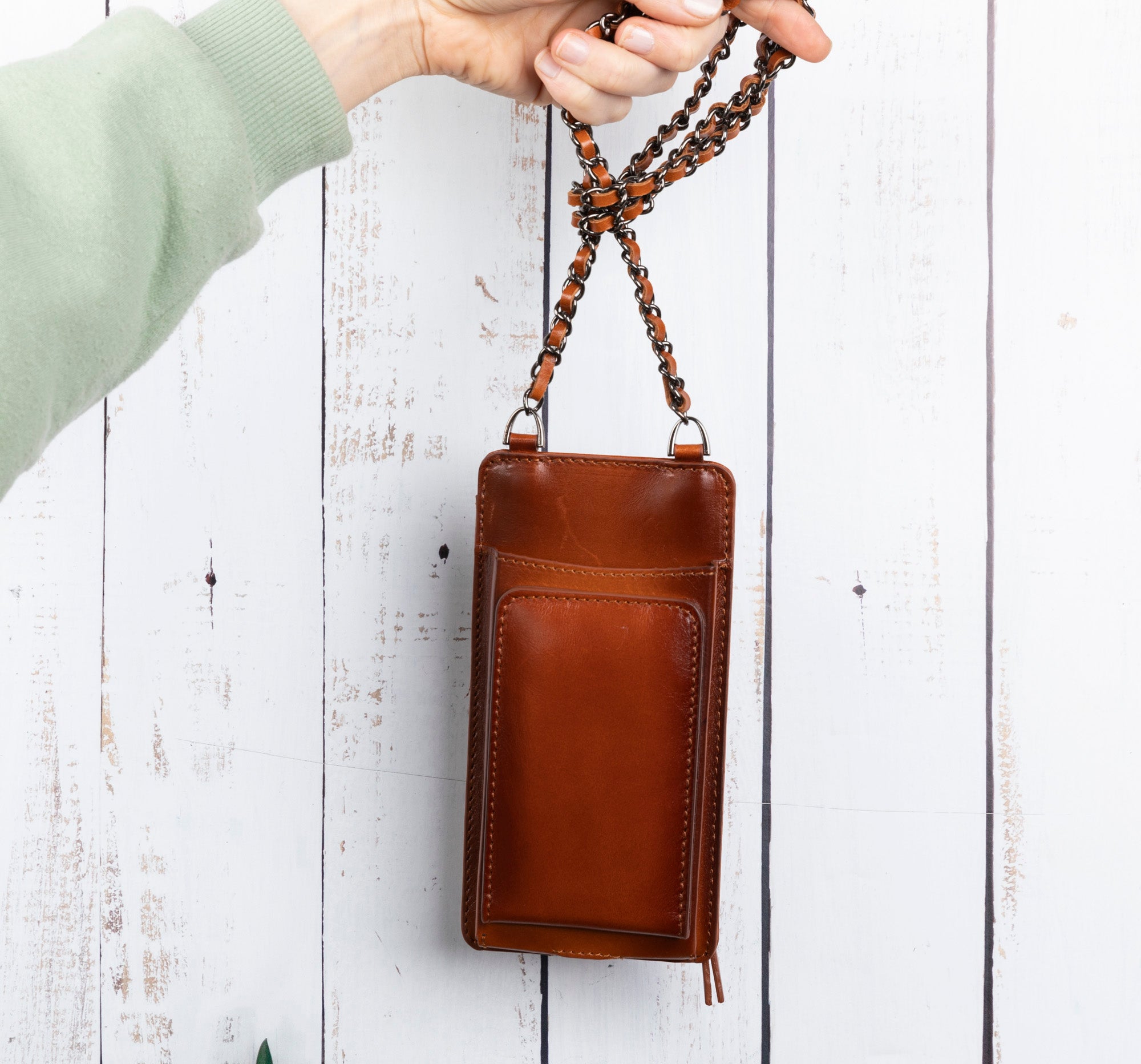 2 in 1, Zincir Askılı Deri Cüzdan-Kartlık ve Telefon Kılıfı