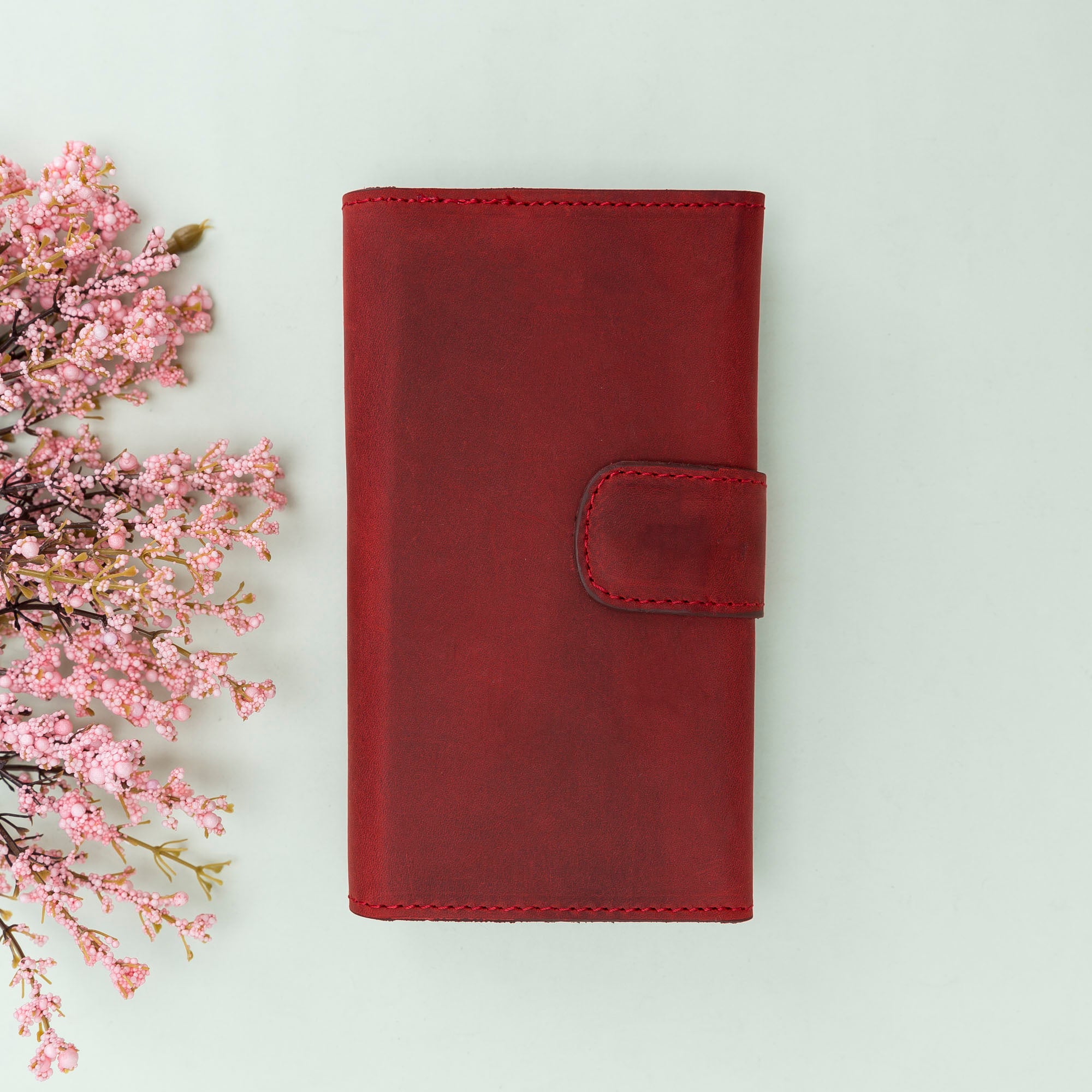 Samsung Galaxy Note 10 Uyumlu Deri Cüzdanlı Kılıf Santa Kırmızı