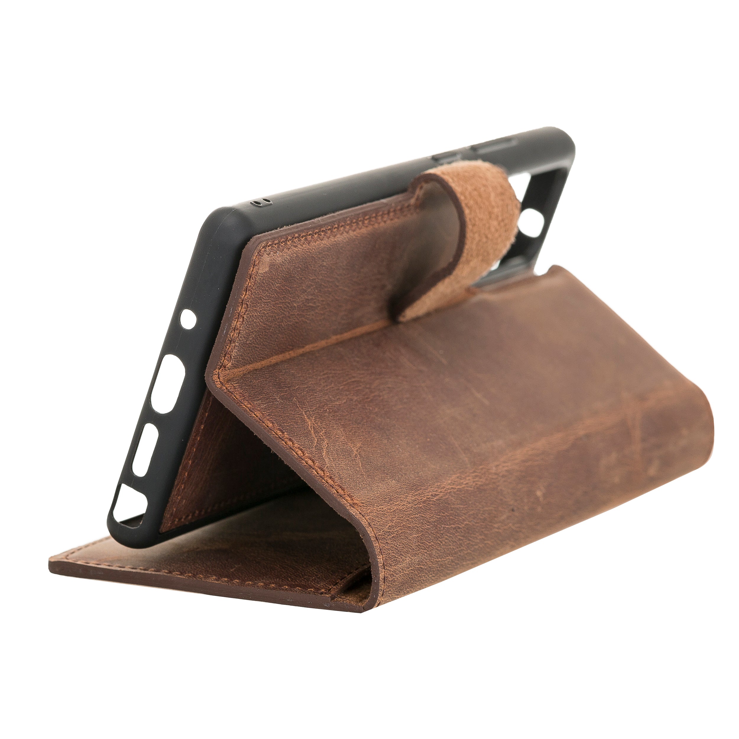 Samsung Galaxy Note 20 uyumlu, Hakiki Deri, El Yapımı, Cüzdanlı Kılıf, Antik Kahve