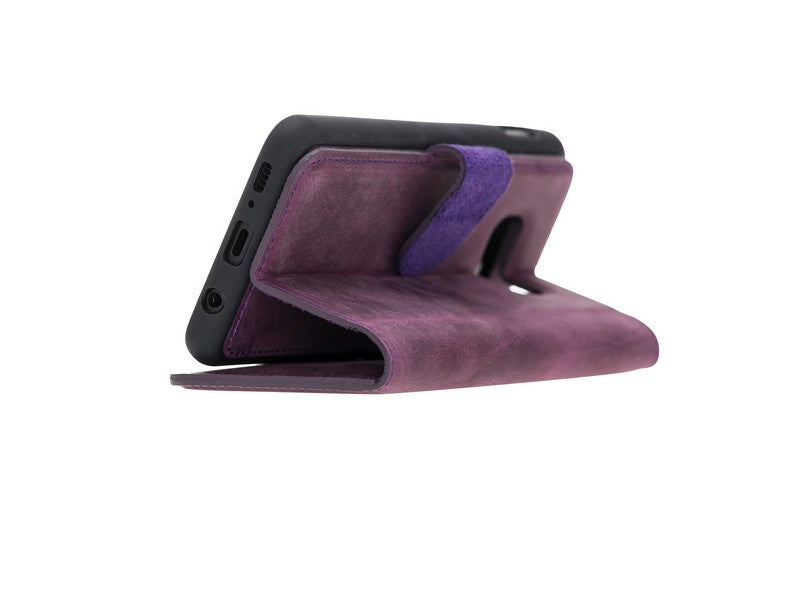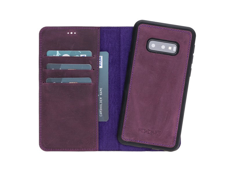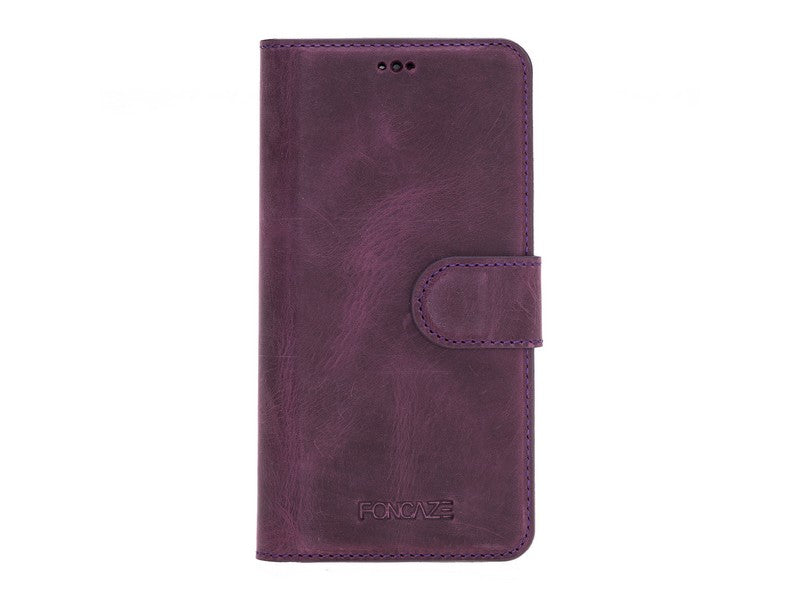 Samsung Galaxy S10E uyumlu, Hakiki Deri, El Yapımı, Cüzdanlı Kılıf, Foncaze G7 Mor