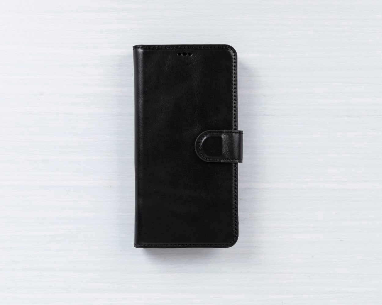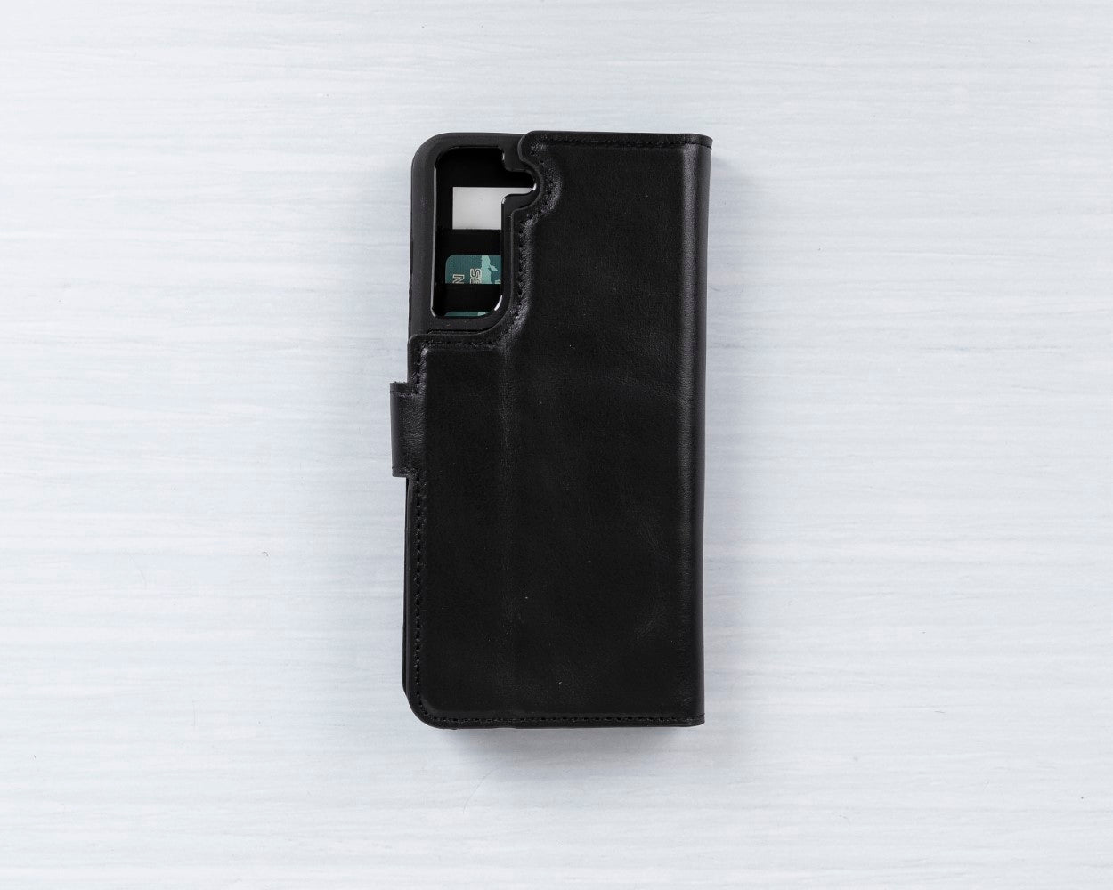 Samsung Galaxy S21 FE uyumlu, Hakiki Deri, El Yapımı, Cüzdanlı Kılıf, Rustik Siyah