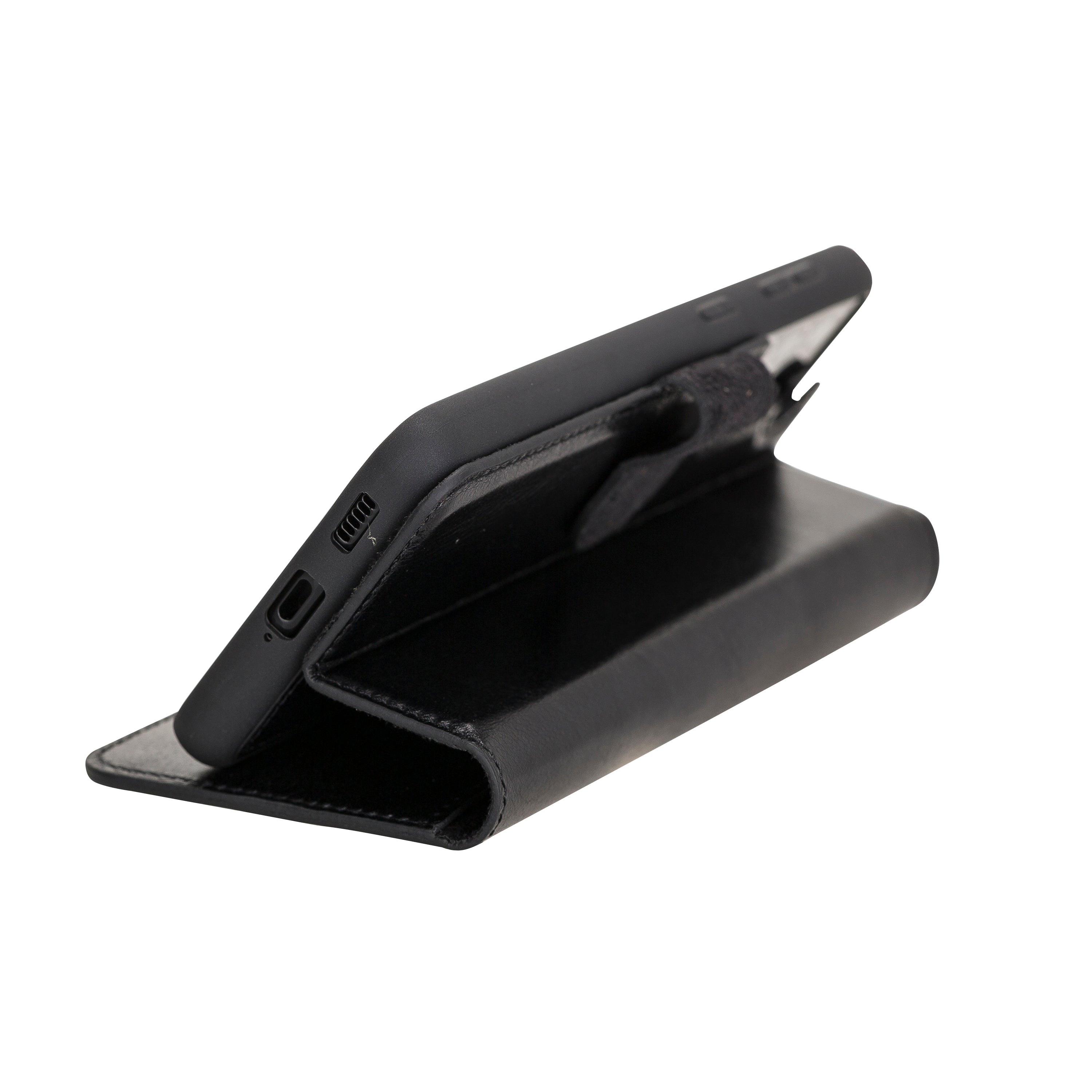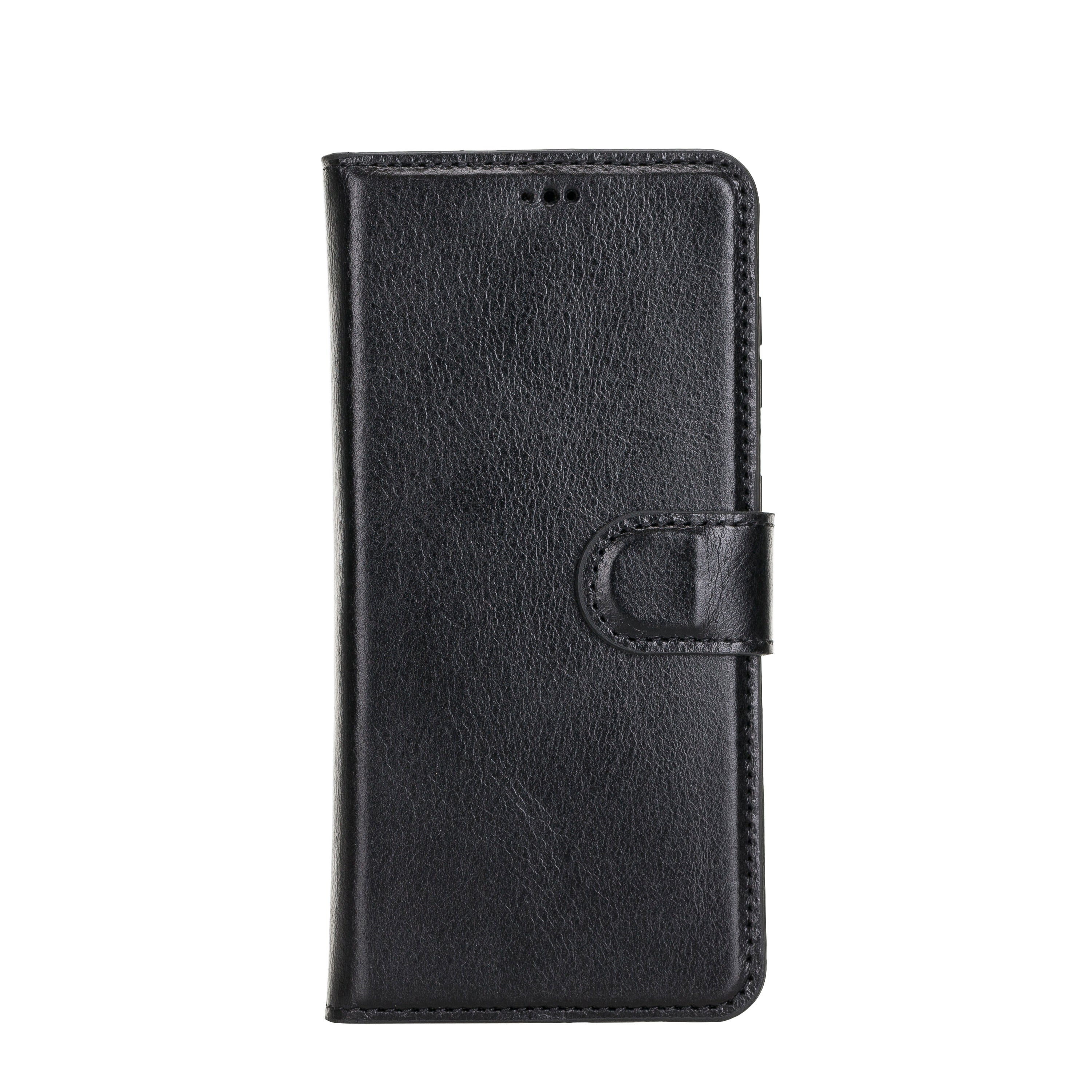 Samsung Galaxy S21 Plus uyumlu, Hakiki Deri, El Yapımı, Cüzdanlı Kılıf, Rustik Siyah