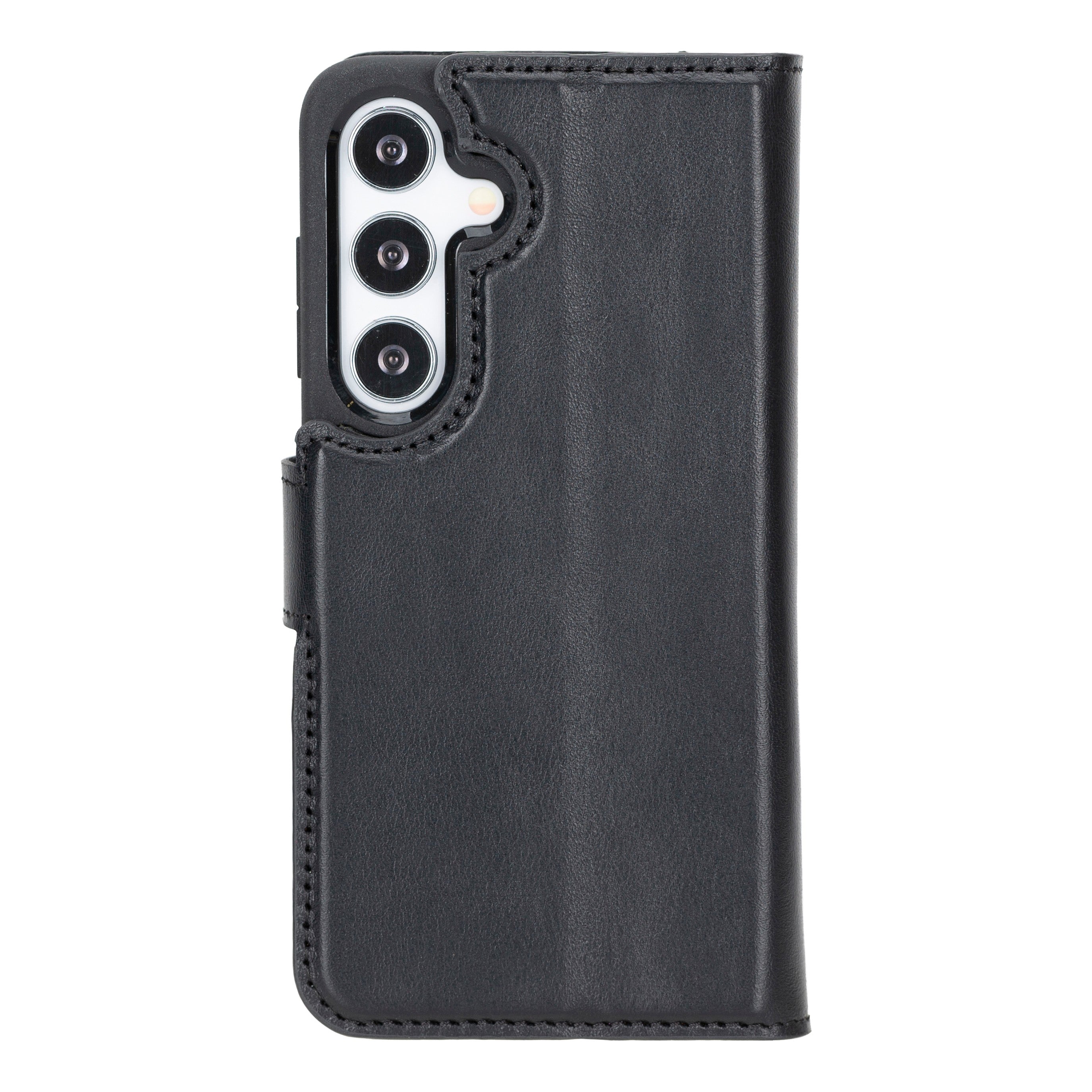 Samsung Galaxy S24 uyumlu, Hakiki Deri, El Yapımı, Cüzdanlı Kılıf, Rustik Siyah
