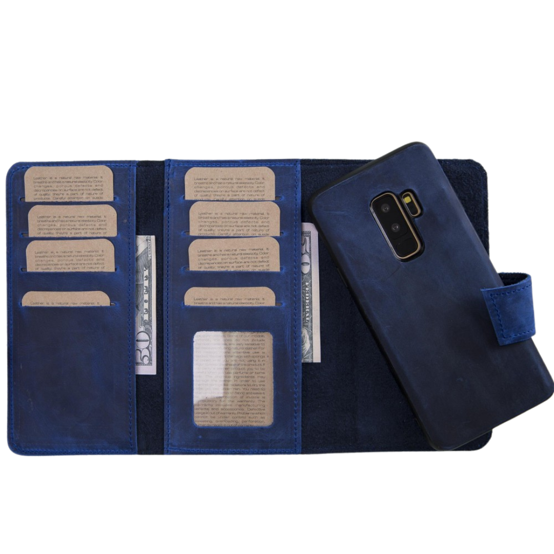 Samsung Galaxy S9 Plus Uyumlu Deri Cüzdanlı Kılıf Santa Mavi