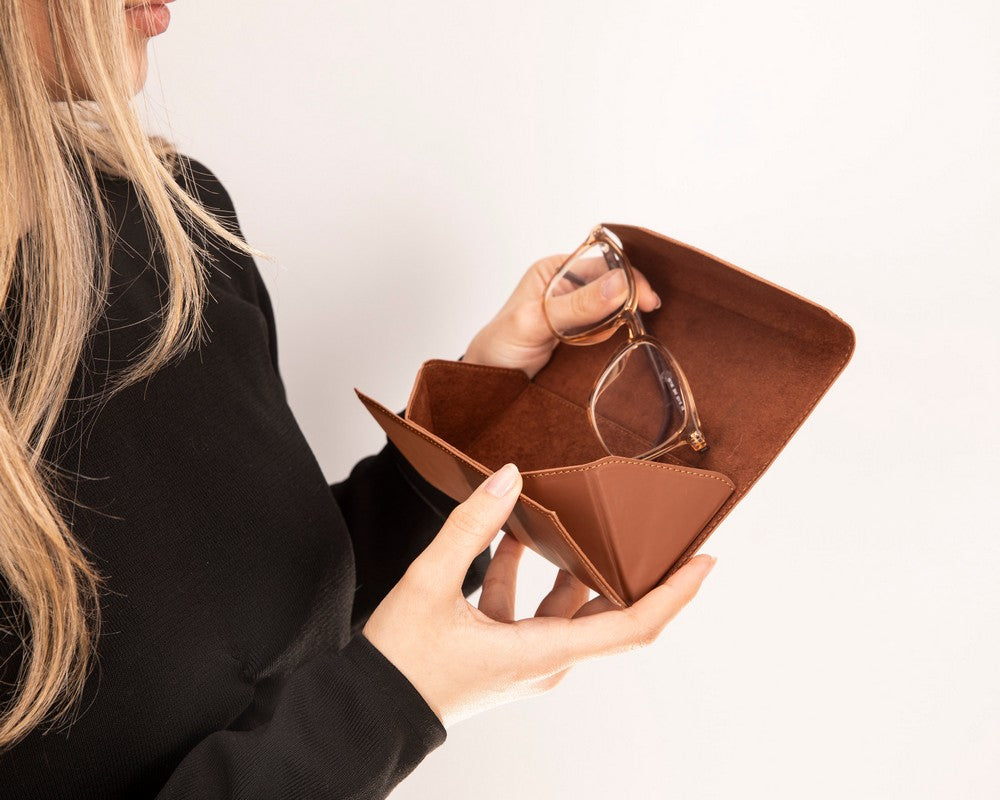 Smart Glass Hakiki Deri, El Yapımı Gözlük Kılıfı, H102 Karamel
